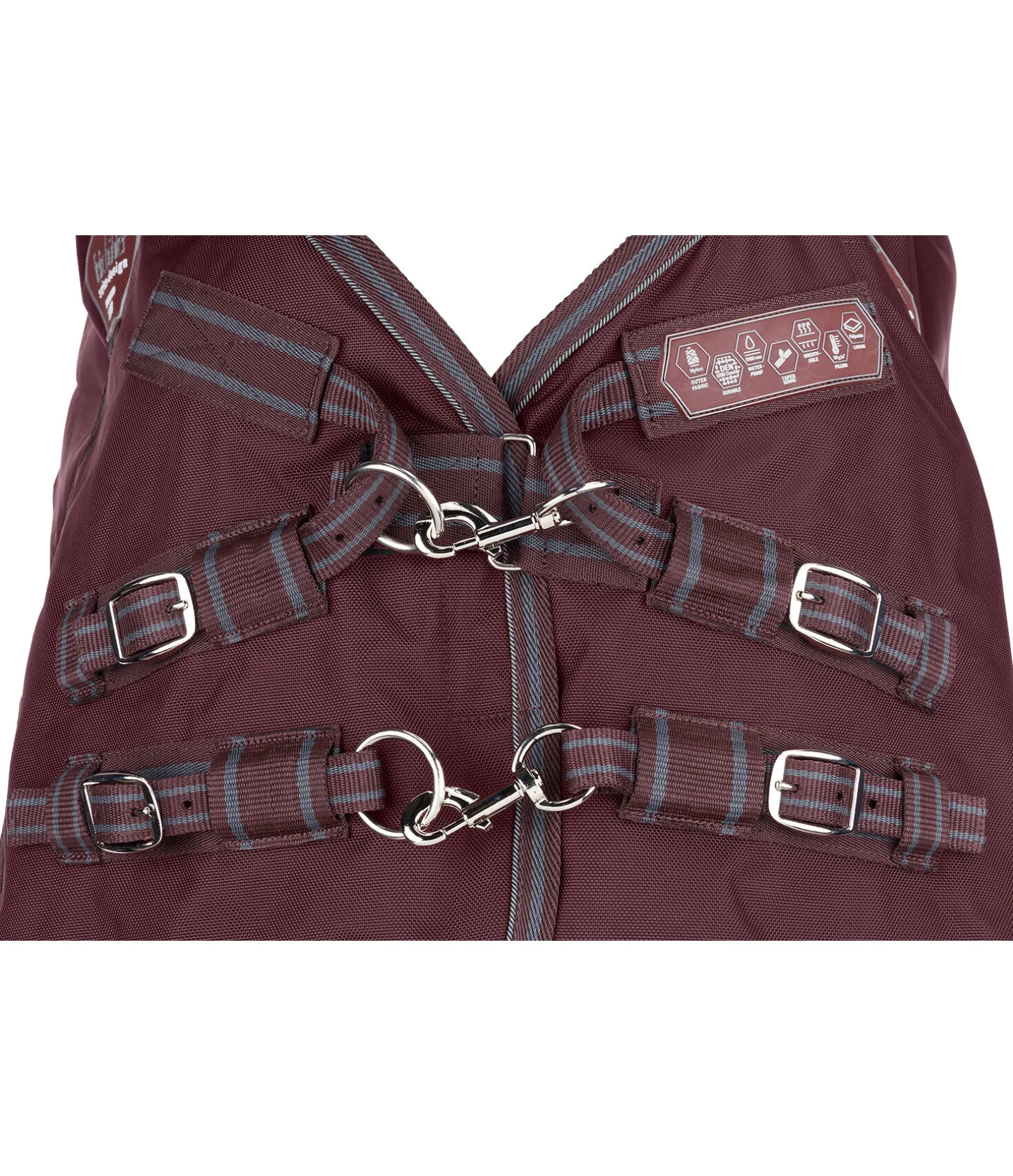 Notre best-seller ! La matière extérieure offre désormais une plus grande résistance à la déchirure et une meilleure imperméabilité pour garantir une longévité optimale avec le même confort qu’auparavant !Couverture d’extérieur fonctionnelle dans une coupe Highneck. Matière en nylon 1 680 deniers particulièrement résistante. Grande imperméabilité (5.000 mm). Comparé au polyester, le nylon est nettement plus doux et soyeux, avec des reflets satinés. Il est également plus extensible que le polyester pour une meilleure résistance à la déchirure. Garnissage chaud de 300 g. Inserts extensibles déperlants en softshell au niveau des épaules et de l’encolure. Grands plis d’aisance pour une liberté de mouvement optimale afin d’éviter les pressions. Rembourrage intérieur généreux pour minimiser davantage les pressions au niveau du garrot. Fermeture de poitrail réglable équilibrée en 3 points, constituée de 2 anneaux et 2 mousquetons et d’une patte auto-agrippante supplémentaire. Les mousquetons peuvent être facilement remplacés si besoin. Doublure lisse protégeant la robe. Sursangles croisées réglables et anneaux permettant la fixation de courroies de cuisses (non incluses). Courroie de queue et rabat de queue réglables en longueur avec bandes et passepoil réfléchissants sur le pourtour. Peut être parfaitement associée avec l’extension de poitrail assortie, article 422 664. Extérieur 100 % nylon, doublure et garnissage 100 % polyester.