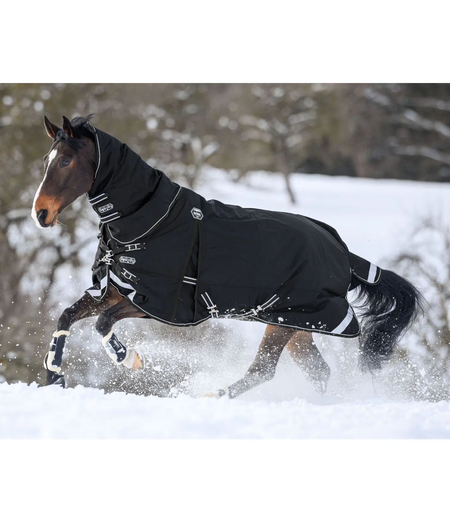 Couvre-cou imperméable (5.000 mm) et résistant (1.200 deniers), adapté à la chemise avec système de liners Felix Bühler Liberty 422 527. Équipé de pattes auto-agrippantes qui permettent de le fixer aux anneaux en métal de la chemise. Avec garnissage 150 g. Doublure lisse protégeant la robe. 100 % polyester.