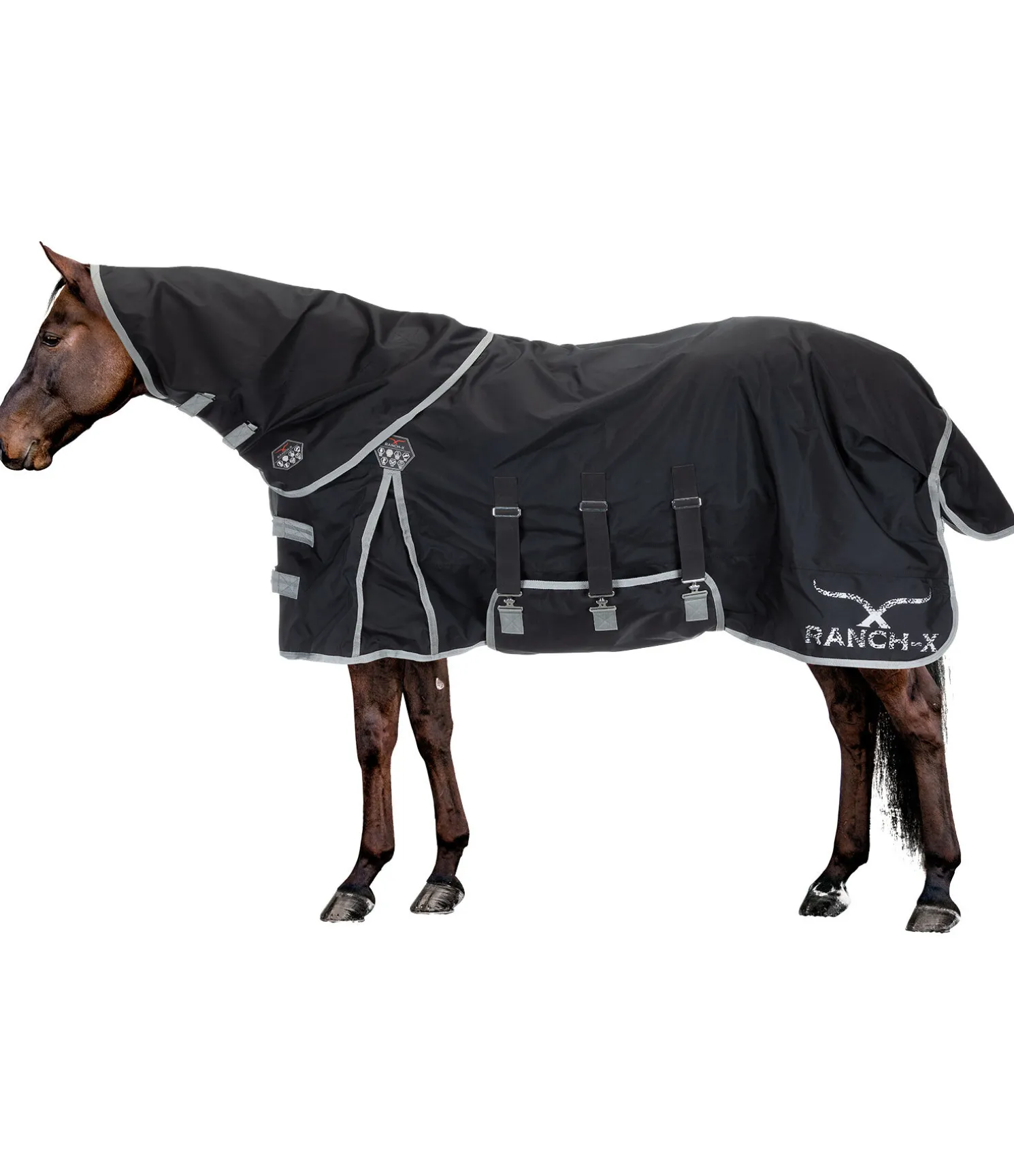 Couvre-cou assorti à notre couverture d’extérieur western All-Rounder référence 183709. Nylon 1680 deniers particulièrement résistant aux déchirures, avec une imperméabilité très élevée (5 000 mm) et une très bonne respirabilité. Doublure intérieure lisse douce pour la robe. Facile à fixer aux anneaux en D de la couverture grâce aux pattes auto-agrippantes. Matière extérieure 100 % nylon, doublure 100 % polyester.