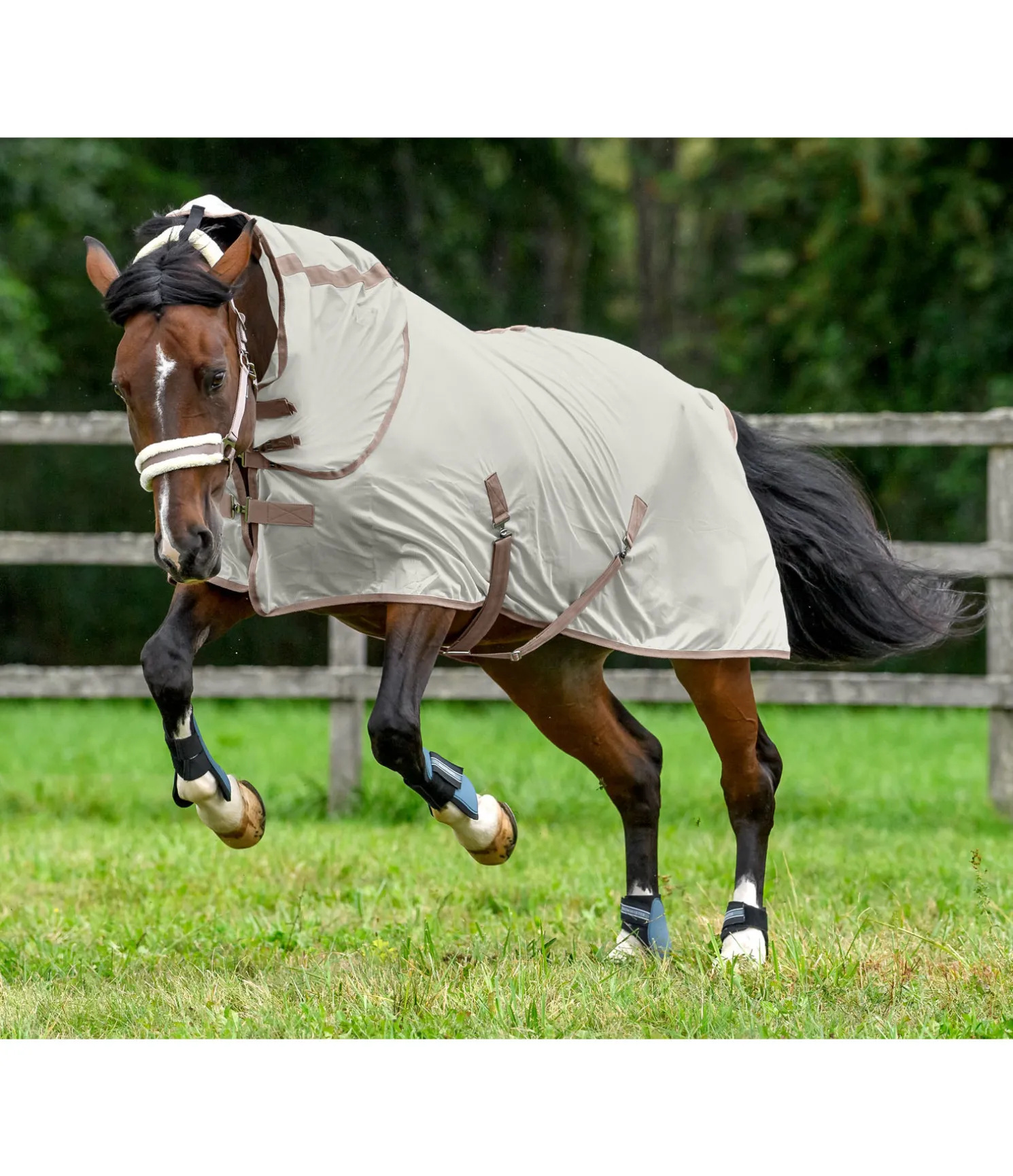 Couvre-cou de protection contre les insectes adapté à la chemise anti-mouches Zoe 422 412. Se fixe à la chemise grâce à 4 anneaux plats en métal qui coincident avec les pattes auto-agrippantes présentes sur la chemise anti-mouches. Doublure satinée au niveau de la crinière, pour éviter la casse de crins et maintenir la robe brillante. Les pattes auto-agrippantes permettent un ajustement optimal et une mise en place facile et rapide. 100 % polyester. Taille XS (pour les couvertures de 85 à 105 cm), taille S (pour les couvertures de 115 à 125 cm), taille M (pour les couvertures de 135 à 145 cm), taille L (pour les couvertures de 155 cm).