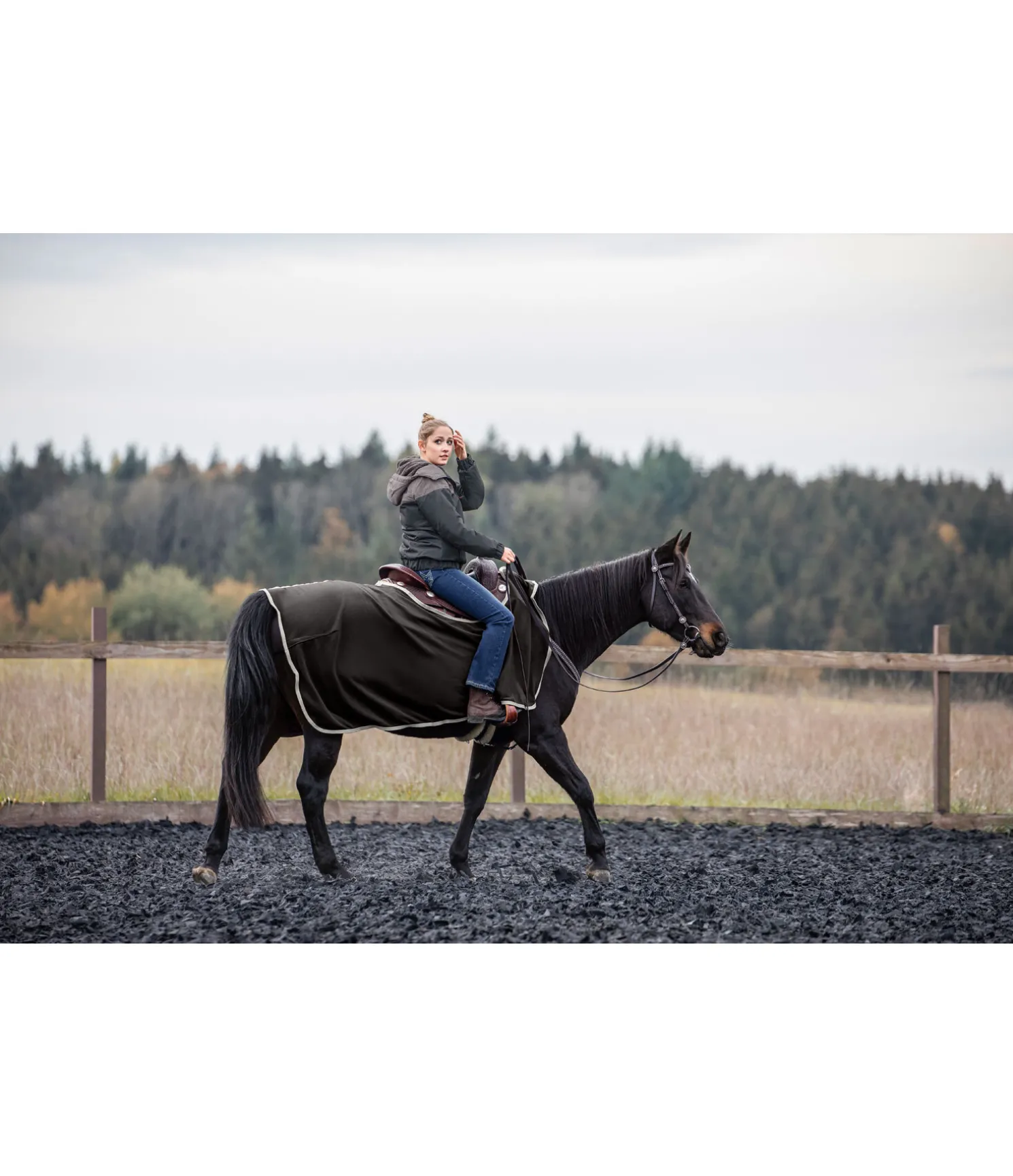 Couvre-reins basique pour selles western. Matière polaire douce, technique et chaude ornée d’une jolie broderie. Fermeture simple par patte auto-agrippante. 100 % polyester