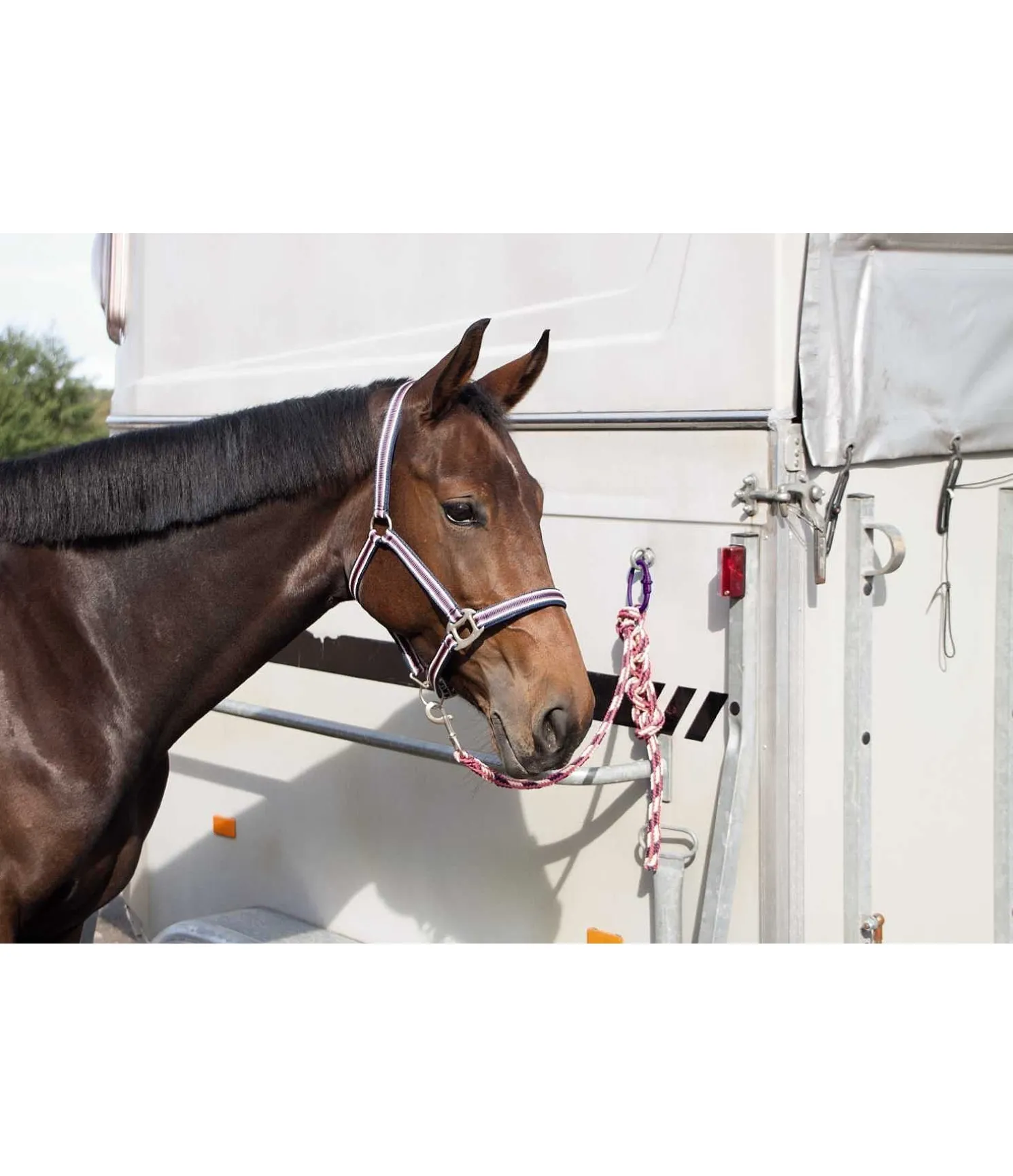 Cet accessoire innovant permet d’attacher votre cheval en toute sécurité. Dans des conditions normales, le cheval est attaché en toute sécurité avec la longe et le crochet Equi-Ping. En situation de panique ou de mouvement brusque, «ping !» : le crochet de sécurite s’ouvre et évite au cheval de lutter. Le mécanisme innovant du crochet Equi-Ping a été conçu de manière à céder en cas de situation d’urgence et à résister lorsque le cheval est « normalement » attaché. Il se place entre la longe et le dispositif d’attache. Evidemment, vous pouvez également utiliser le crochet Equi-Ping pour suspendre le filet à foin ou un mors.