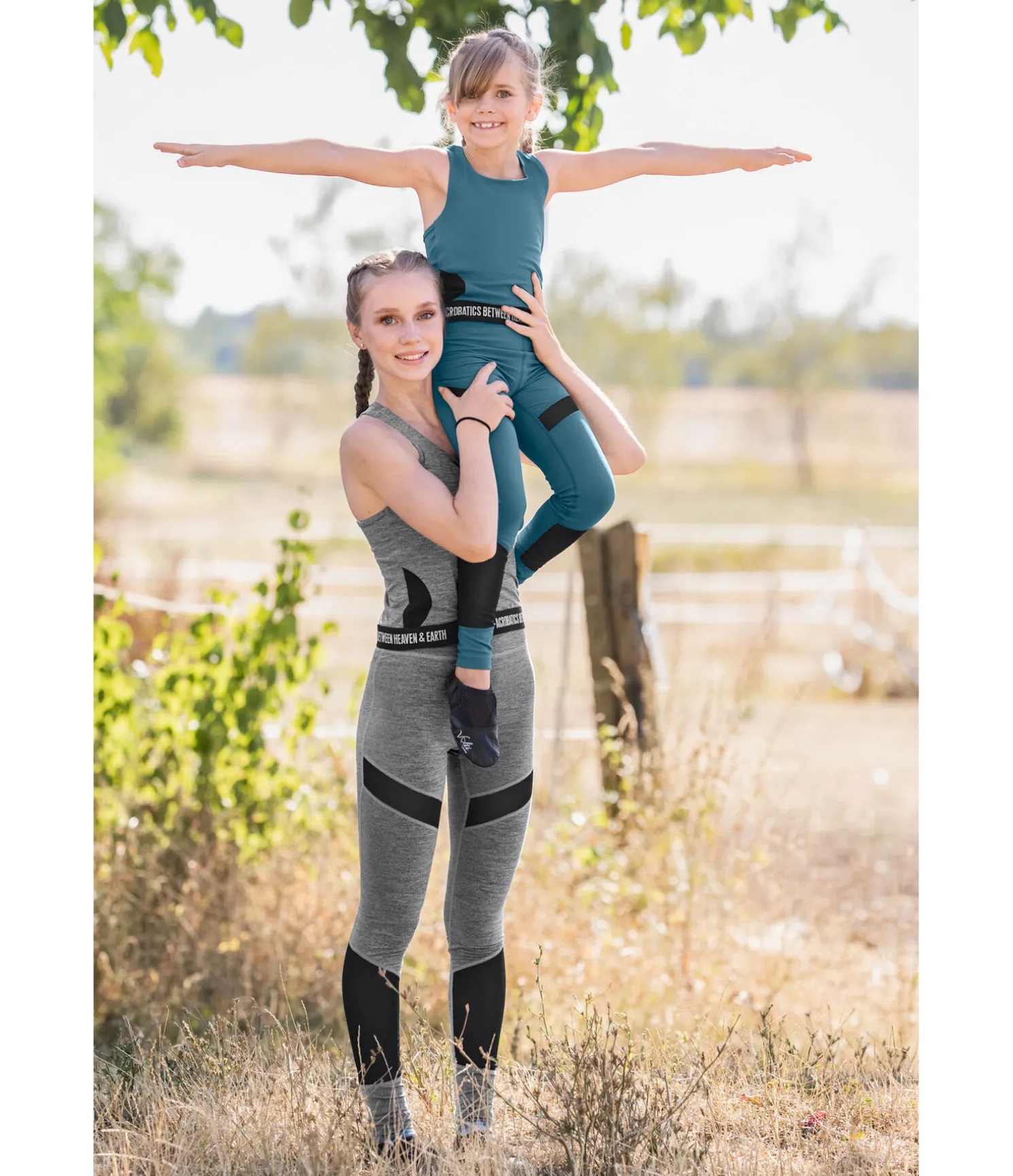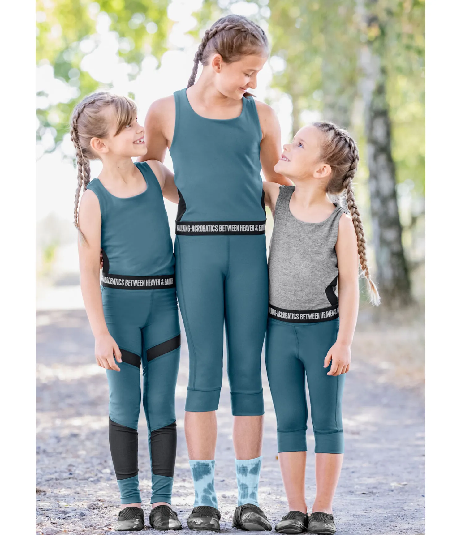 Débardeur avec larges bretelles et découpe au niveau des omoplates pour une bonne circulation de l’air. Look sportif. Bande élastiquée à la taille avec inscription brodée « Vaulting – Acrobatics between heaven & earth ». 88 % polyester, 12 % élasthanne (charbon chiné) et 78 % polyester, 22 % élasthanne (aquamarine).