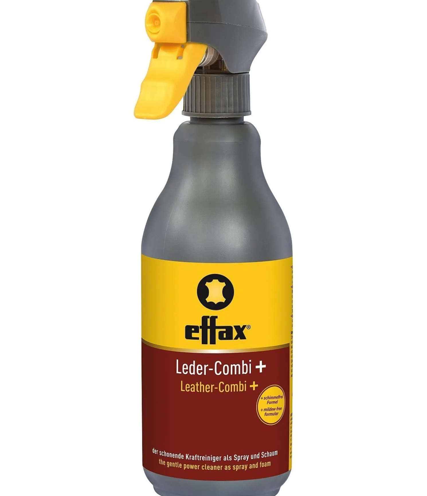 Le nettoyant cuir Combi+ d’Effax peut être utilisé sous forme de spray ou de mousse. Sa formule est anti-moisissures. Grâce à sa tête de pulvérisation multifonction, le nettoyant cuir Combi+ peut être facilement pulvérisé sur toute la surface du cuir ou être appliqué sous forme de mousse. Sa formule puissante et non-grasse enlève la saleté tenace, les résidus secs et la poussière. La formule renforcée du nettoyant cuir Combi+ d’Effax empêche la formation de moisissures et de champignons grâce à une formule innovante anti-moisissures. Il préserve les caractéristiques naturelles et les propriétés anti-dérapantes du cuir.