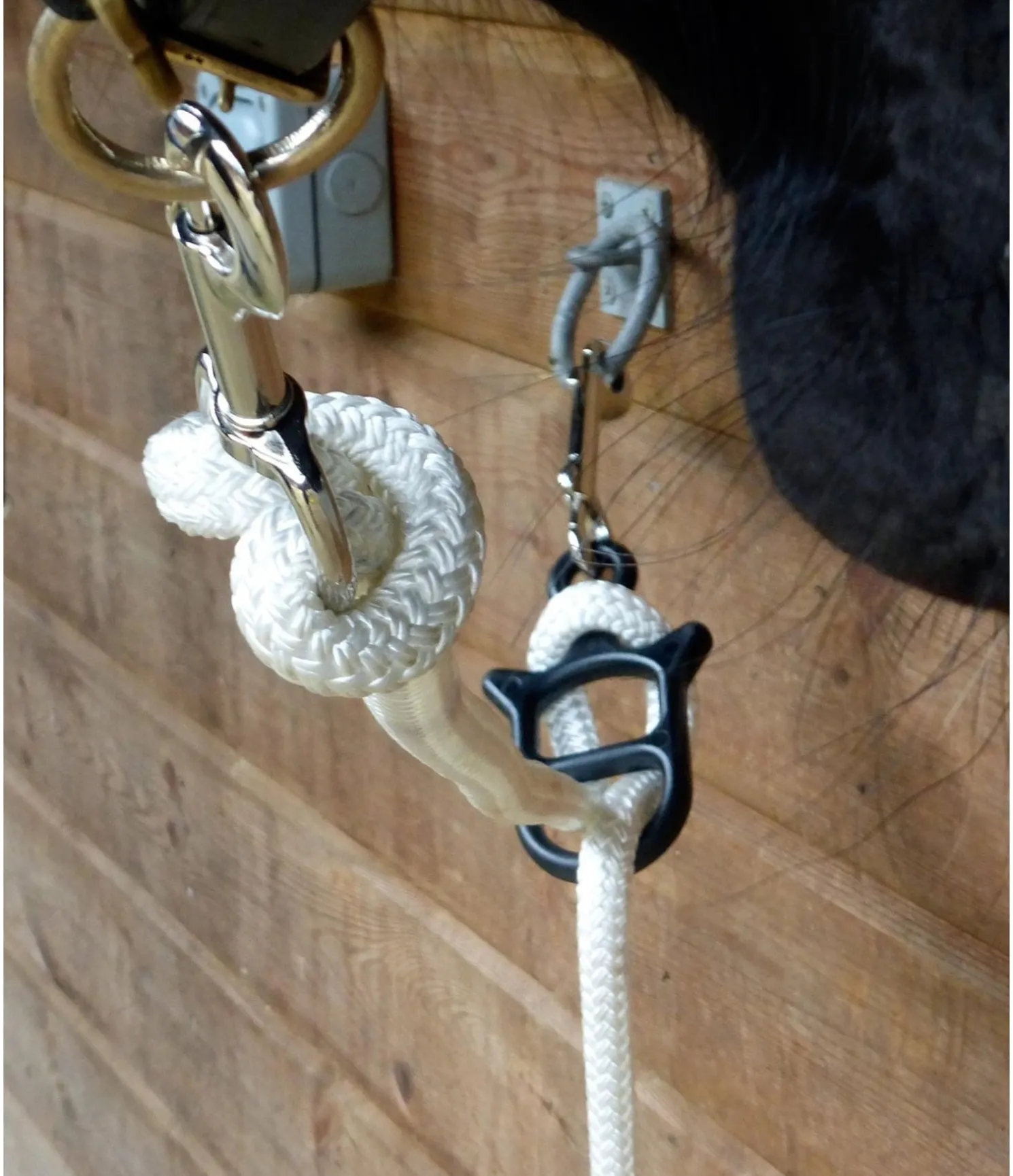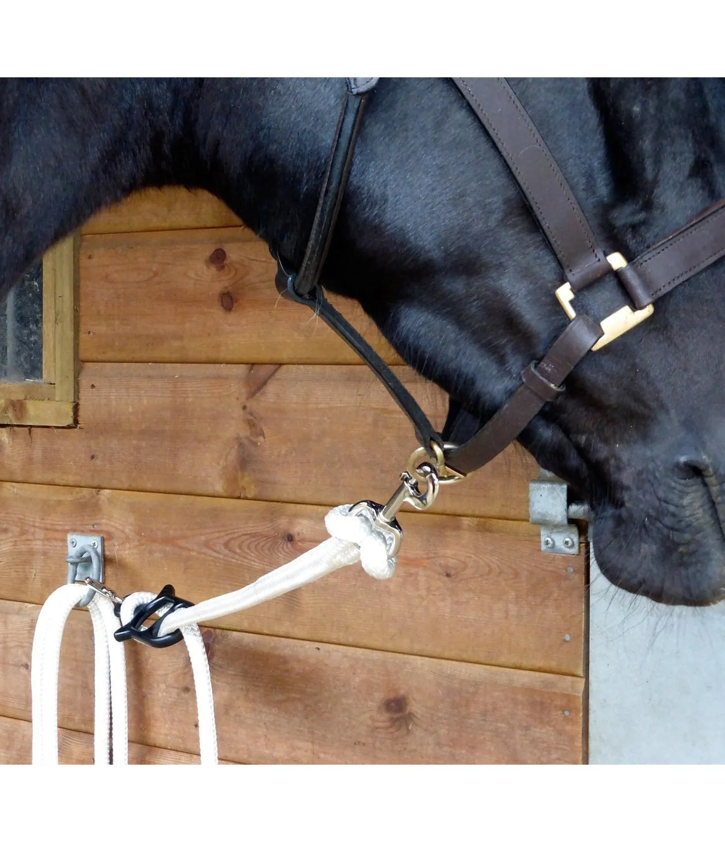 Si en situation de panique, le cheval tire sur la longe, le dispositif d’attache idolo cède et libère progressivement des segments de la longe. Ceci permet de réduire la pression et la résistance, tout en maintenant le cheval attaché de manière sûre.