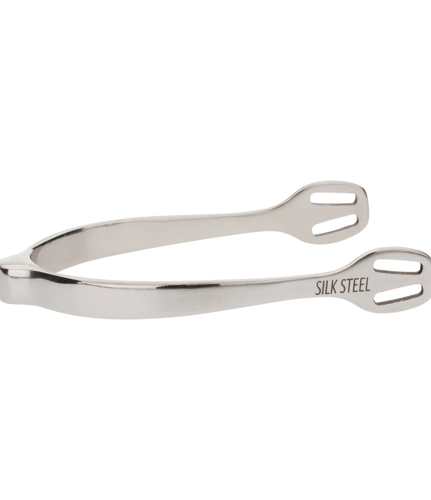 Éperons en acier inoxydable. Tige de 10 mm de long, parfait pour habituer le cheval et le cavalier. Passants de lanières obliques pour empêcher tout glissement.