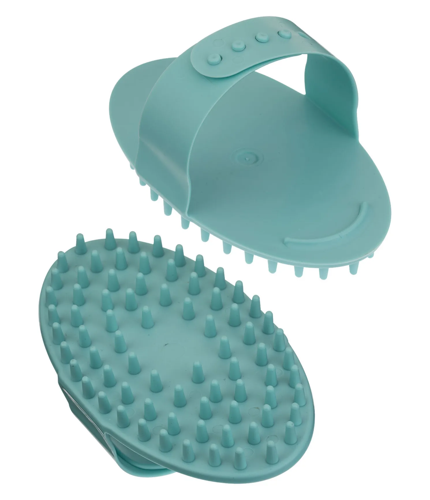 Étrille à picots très flexibles en plastique souple. Idéale pour le massage des chevaux et en période de mue. Le bord arrondi au niveau des doigts permet une prise en main optimale lors du pansage et fait gagner en efficacité. Avec dragonne ajustable. 16 x 9,5 cm.