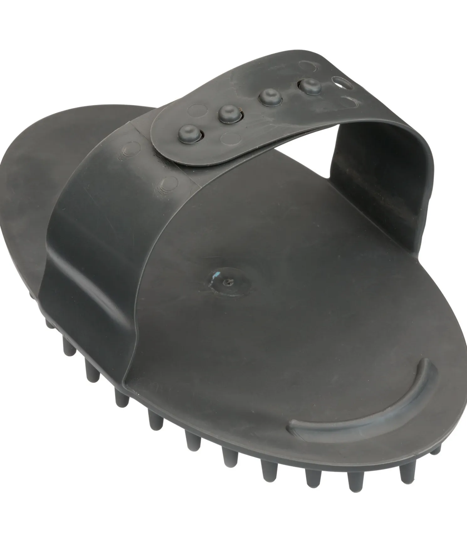 Étrille à picots très flexibles en plastique souple. Idéale pour le massage des chevaux et en période de mue. Le bord arrondi au niveau des doigts permet une prise en main optimale lors du pansage et fait gagner en efficacité. Avec dragonne ajustable. 16 x 9,5 cm.