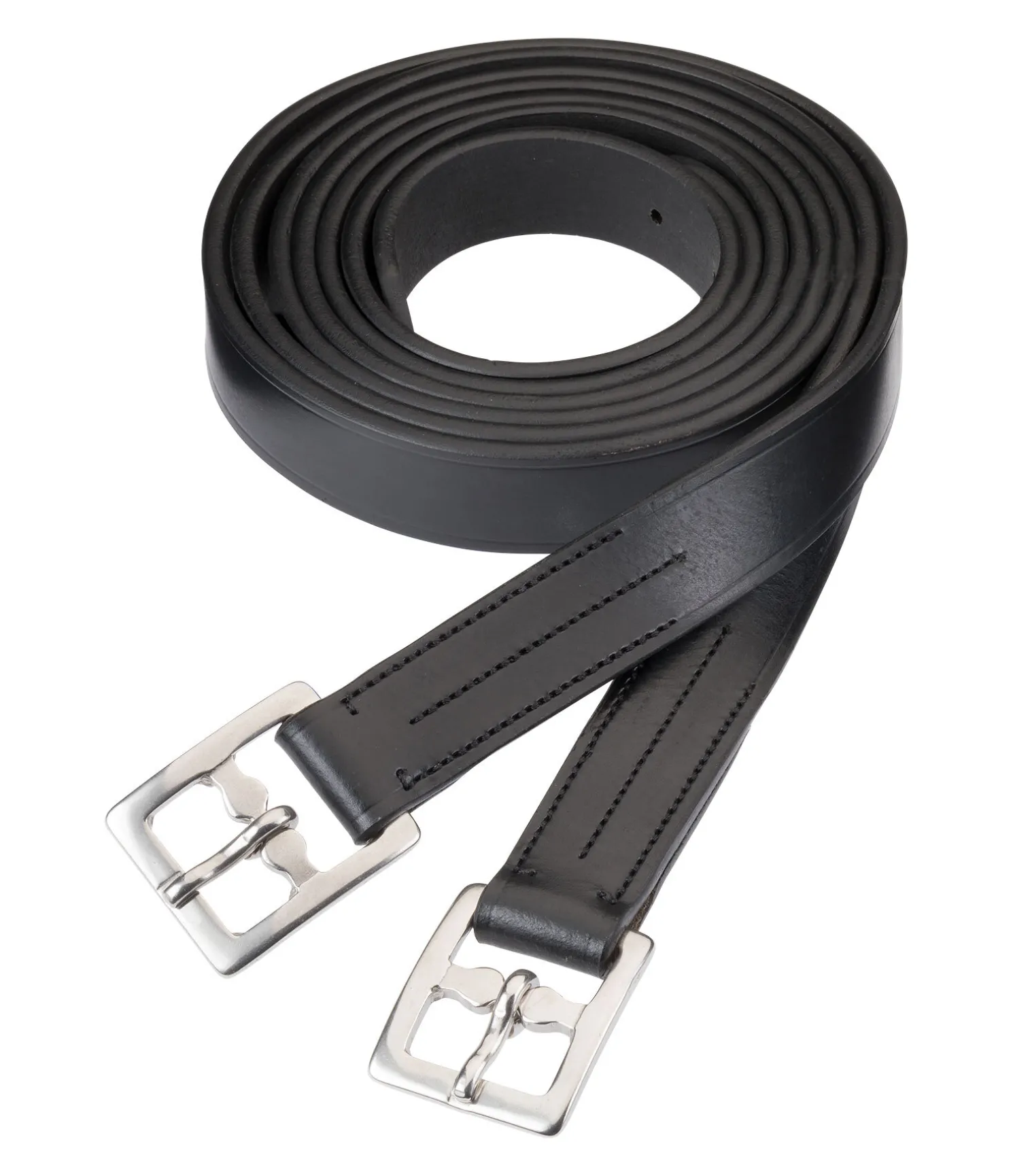 Étrivières de grande qualité en cuir huilé particulièrement résistant et souple. Boucles argentées en acier inoxydable. Largeur 2,55 cm. Vendues par paire.