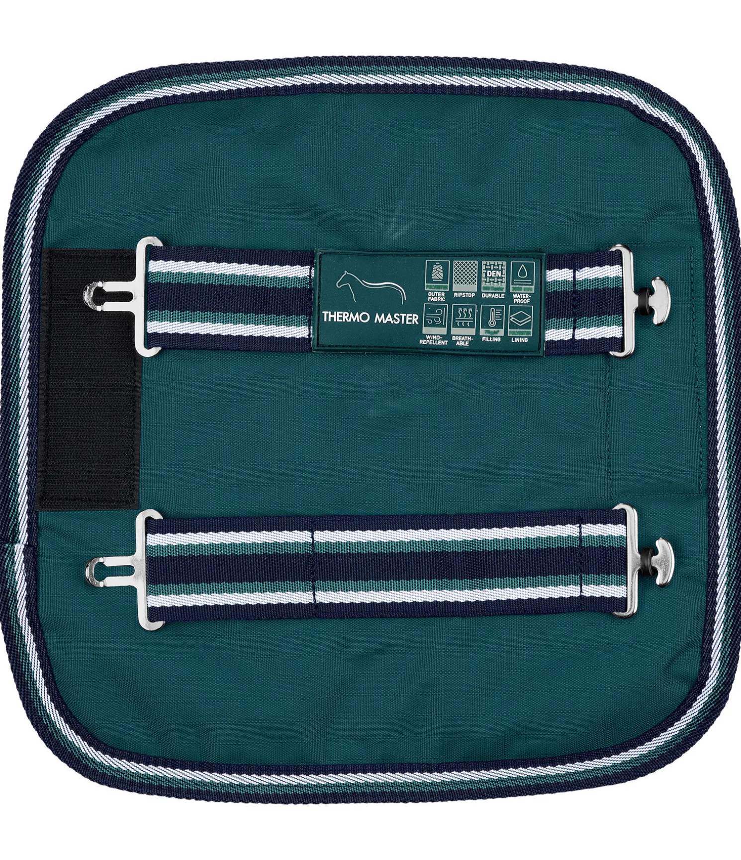 Extension de poitrail adaptée aux couvertures d’extérieur Kadir IV (Art. 422 458, 422 459, 422 460, 422 461) et Kalina II (Art. 422 462, 422 463, 422 465) en matière Ripstop 600 deniers, imperméable (3.000 mm) avec garnissage léger 75 g. Double fermeture de poitrail avec crochets en T et patte auto-agrippante supplémentaire pour un maintien sûr. Doublure lisse satinée. 100 % polyester. Petit conseil : la petite extension peut aussi être fixée avec des couvertures plus grandes ! Choisis la taille 1 pour une extension supplémentaire d’env. 10 cm et la taille 2 pour une extension d’env. 25 cm. 100 % polyester. Taille 1 (85 – 125 cm), taille 2 (135 – 175 cm).