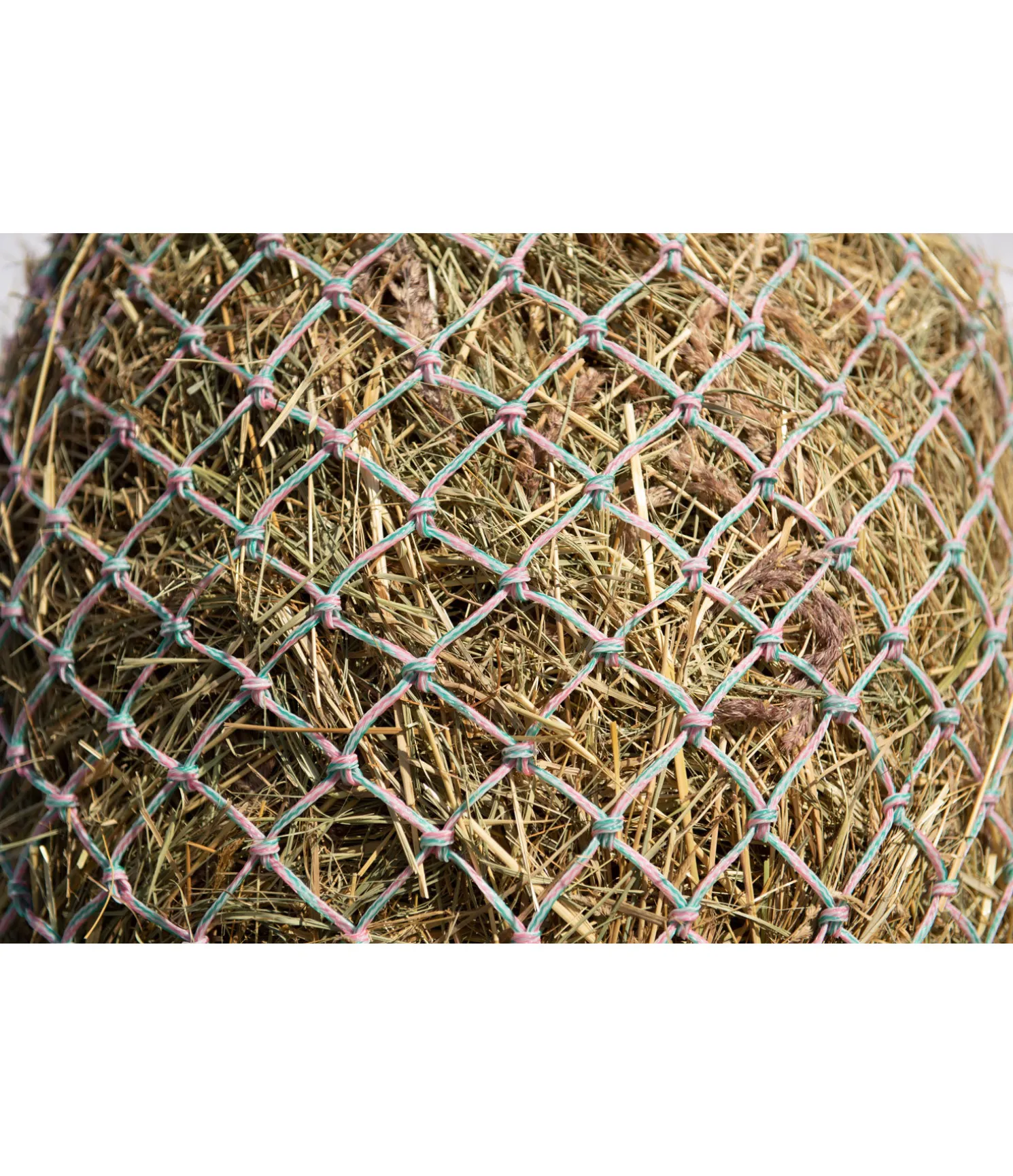 Filet à foin coloré en polypropylène solide. Mailles : 5 x 4,5 cm. Dimensions à vide : 85 x 80 cm. Contenance : 5 kg.