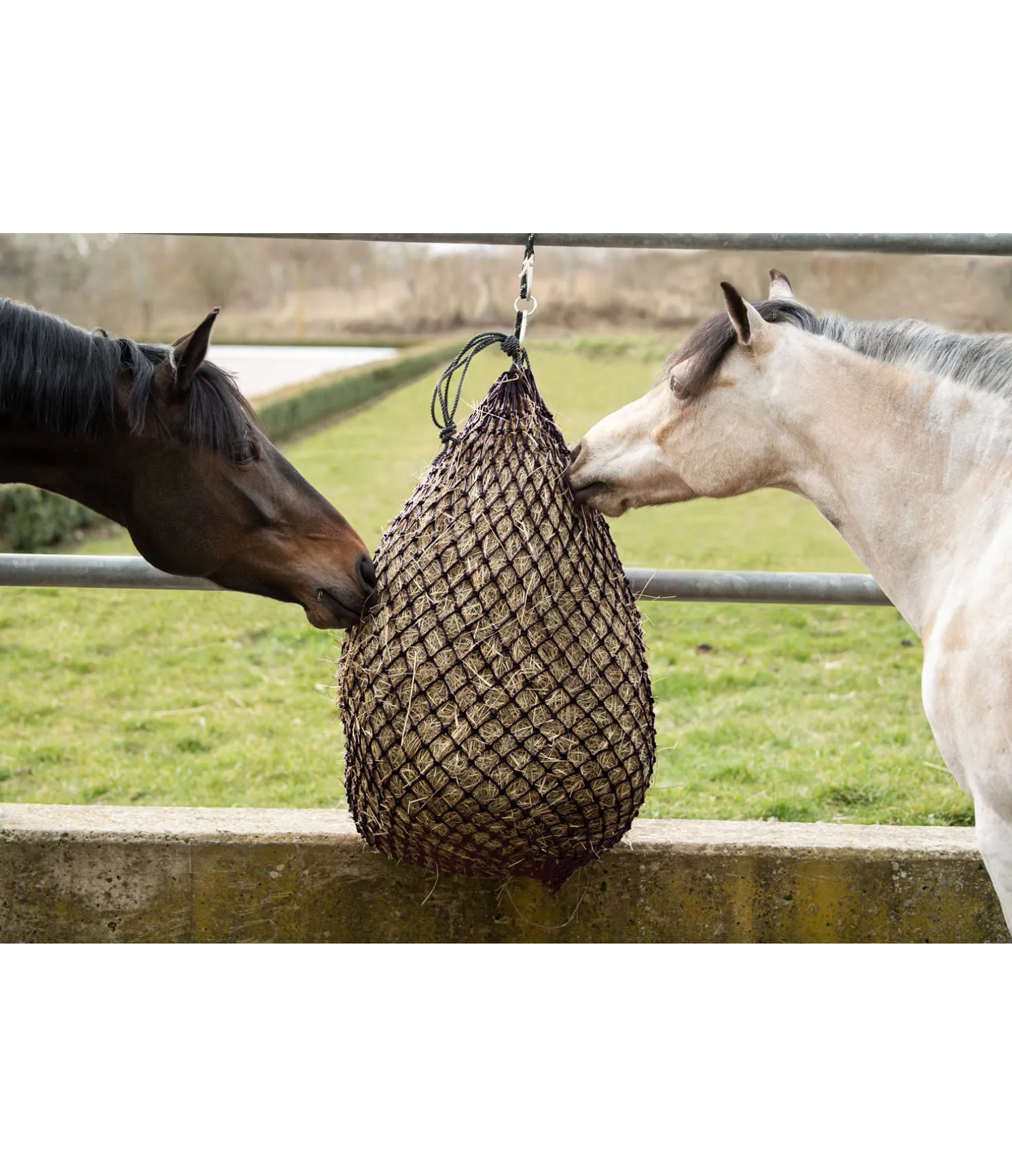 Filet à foin avec mailles 3 x 3 cm pour ralentir la prise alimentaire. Dimensions maximales du filet : 80 x 105 cm. Capacité : 6 kg.