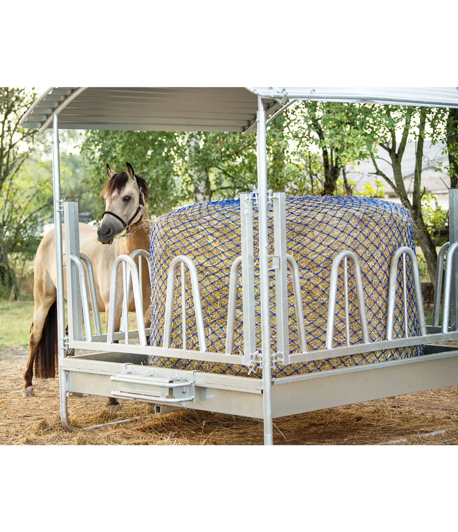 Poser sur la balle de foin puis fermer en dessous à l’aide du cordon de serrage. En polypropylène, dimensions 2,5 x 2,5 m, largeur des mailles 5 x 5 cm.