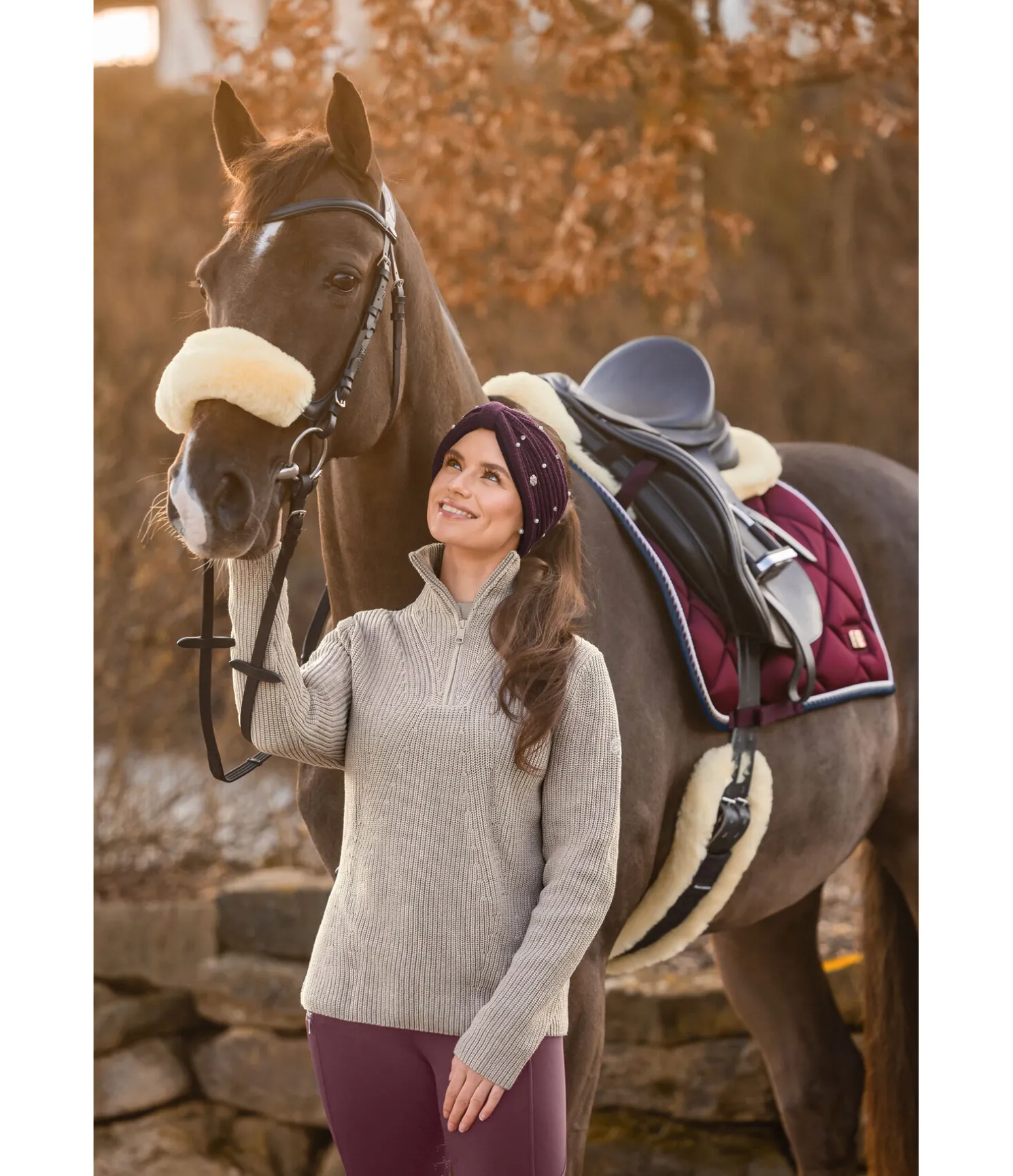 Fourreau en fourrure d’agneau avec bande auto-agrippante qui permet d’éviter les irritations et les points de pression dans la nuque et sur le chanfrein. 100 % fourrure d’agneau mérinos. Lavable à 30 degrés avec le programme de lavage spécifique pour la laine. Veuillez utiliser uniquement une lessive spéciale pour fourrure d’agneau. P (Poney) : 21 cm F (Full) : 25 cm.