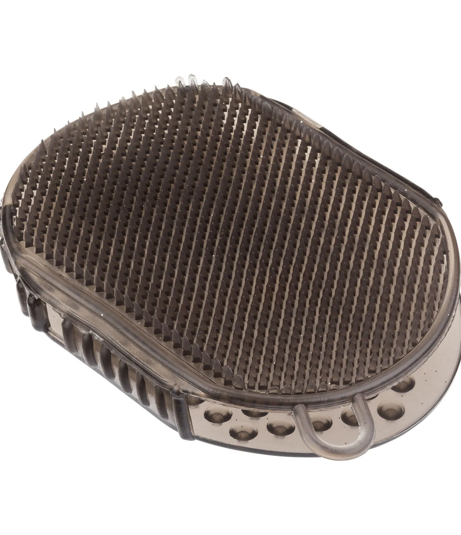 Gant de massage en caoutchouc transparent avec un léger effet pailleté. Idéal pour les soins quotidiens de la robe et les massages. Un côté à petits picots et un côté à gros picots.