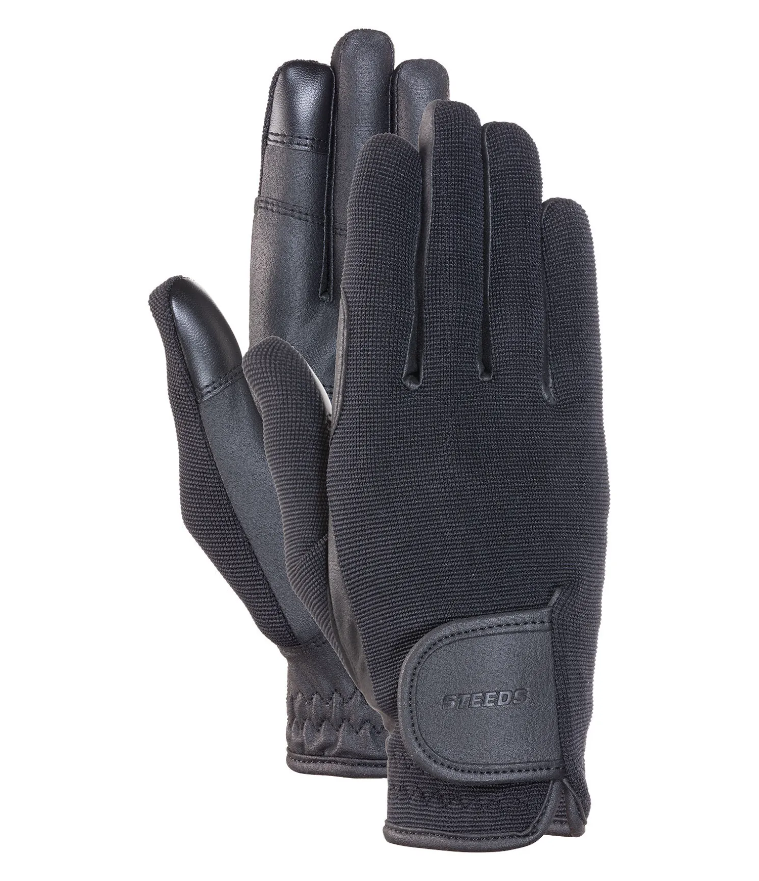 Gants agréables à porter. Coupe tendance. Matière respirante extensible sur le dos de la main et adhérente à l’intérieur pour une bonne prise des rênes. Compatibles avec les écrans tactiles. Respirants. Dessus 100 % polyester. Paume 100 % polyuréthane.