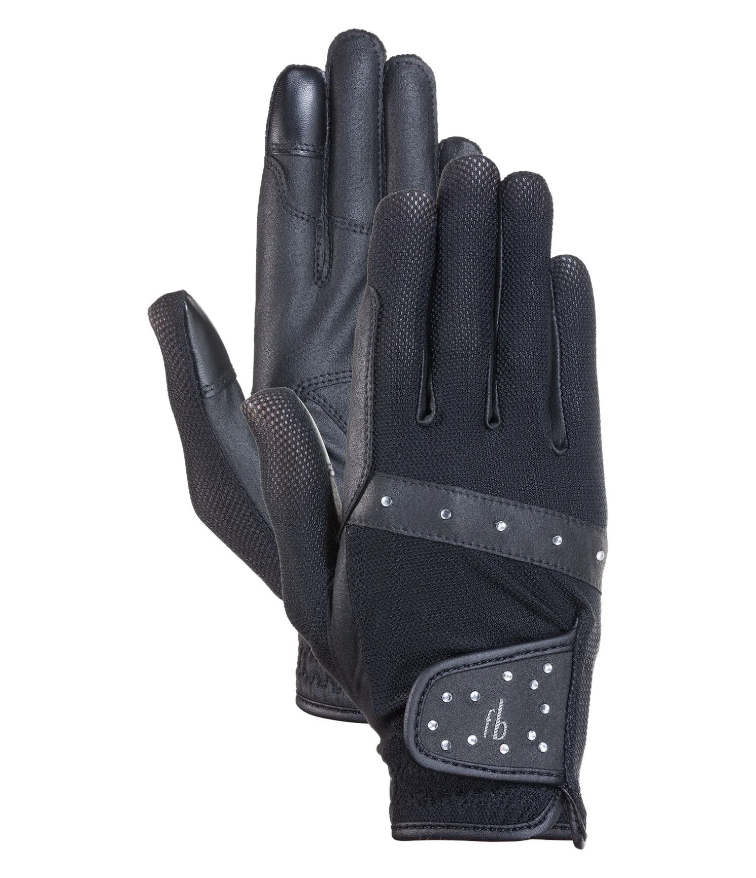 Gants d’équitation d’été élégants. Tissu mesh respirant sur le dessus de main, idéal pour les chaudes journées. Strass décoratifs. Fermeture par patte auto-agrippante avec logo Felix Bühler. Renfort de rêne sur l’index pour éviter les irritations dues aux frottements. Gants compatibles avec les écrans tactiles. Dessus et paume 100 % nylon. Mesh 100 % polyester.