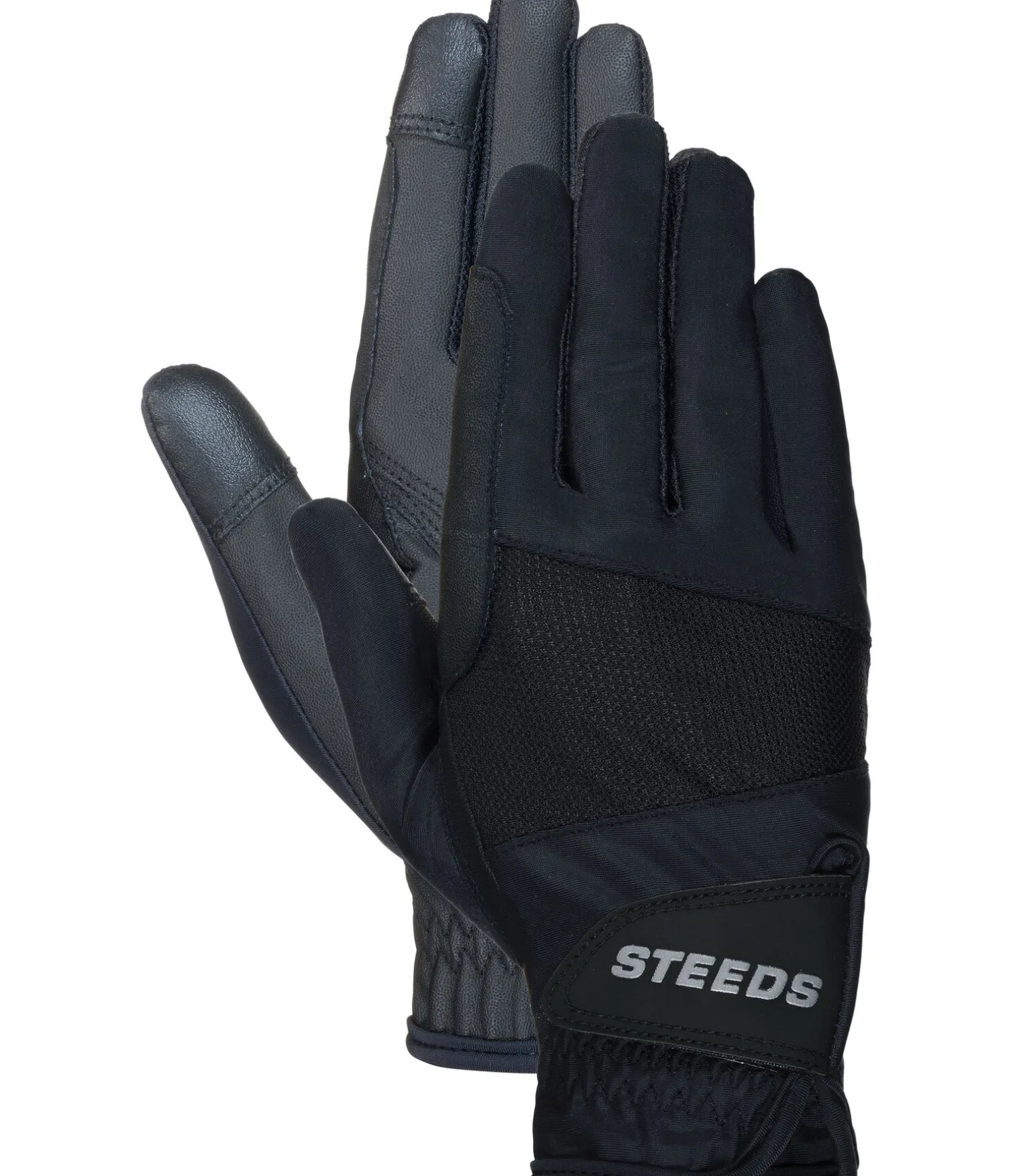 Gants d’équitation d’été légers au look sportif. Dos de la main extensible en tissus mesh respirant et en nylon fin. Paume antidérapante en matière PU pour une bonne prise en main des rênes. Poignets élastiqués avec logo STEEDS métallisé imprimé sur la fermeture auto-agrippante. Renforts aux passages de rênes. Dessus : 70 % nylon, 30 % élasthanne. Paume: 80 % polyuréthane, 20 % polyester.