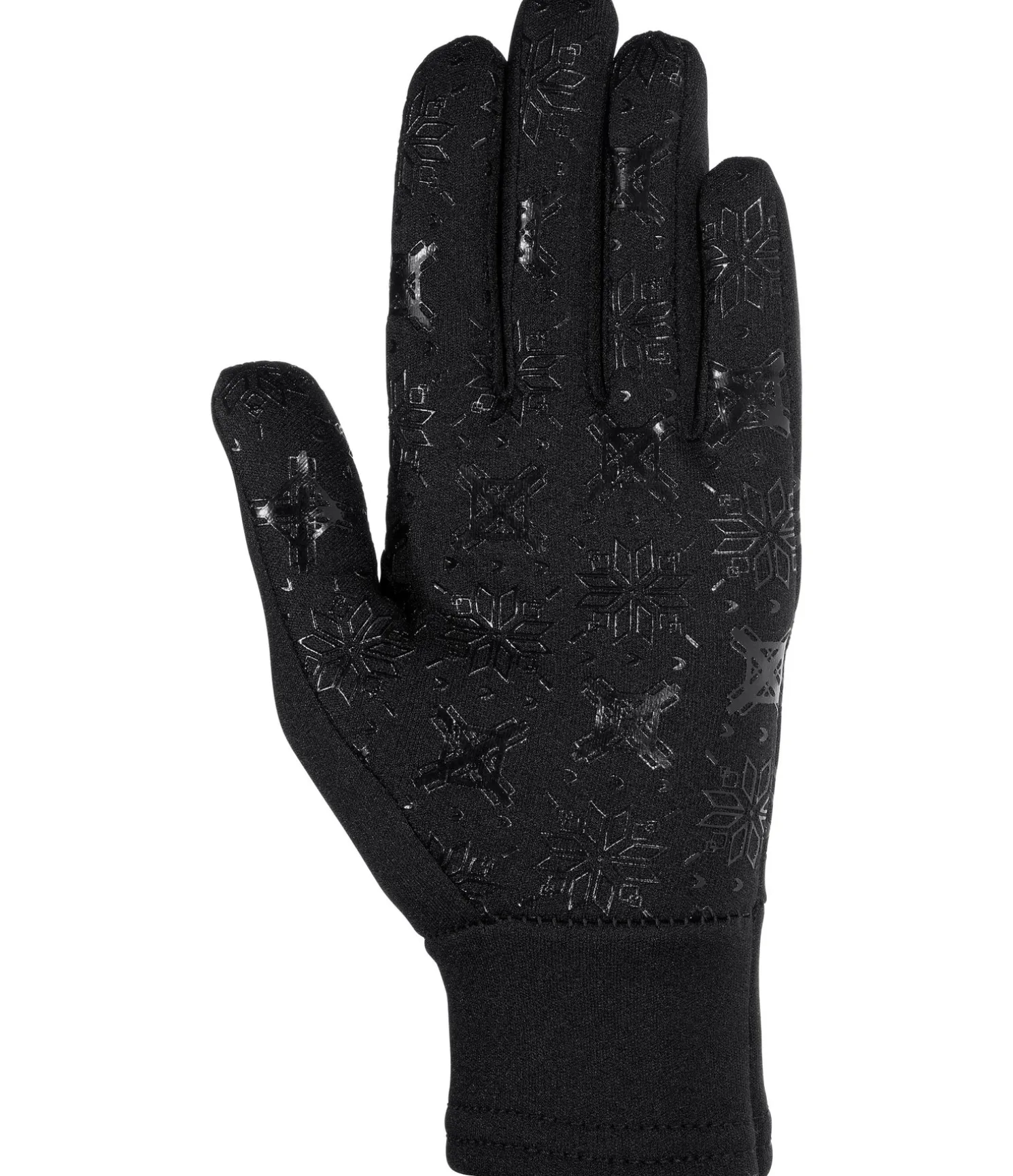 Gants d’équitation sportifs en polaire douce, également adaptés aux journées très froides. Paume avec imprimé flocon de neige. Dessus 100% nylon, intérieur 100% polyester.