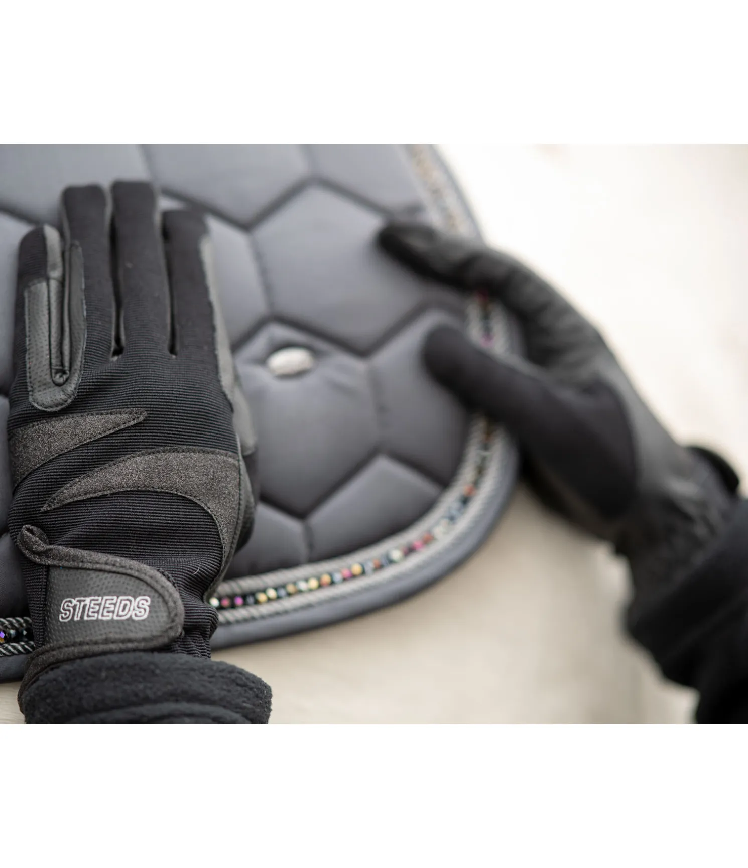 Gants d’équitation d’hiver avec reflets scintillants. Doublure chaude et douce. Poignets élastiqués avec fermeture par patte auto-agrippante. Renforts aux passages de rênes. Partie supérieure 98 % nylon, 2 % élasthanne. Insert 100 % polyester. Paume 100 % polyuréthane. Doublure 100 % polyester.