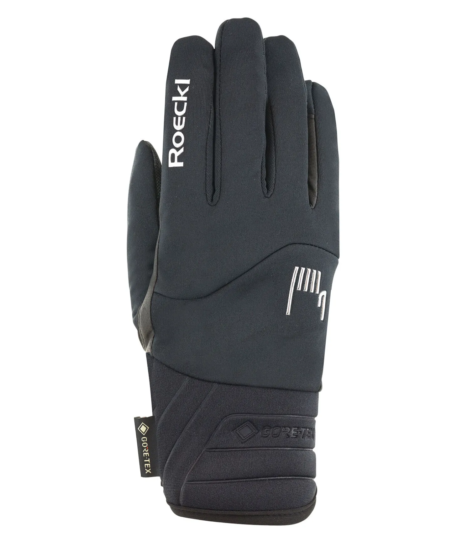 Efficacement imperméables, agréablement chauds, extrêmement confortables – les gants d’équitation hiver WOLDA GTX répondent à toutes les attentes des cavaliers et cavalières ainsi que des fans de chevaux. Grâce au ROECK-PROOF® ECO Denali composé à 87 % de polyester recyclé sur le dessus de la main, le vent froid et l’humidité n’ont aucune chance. De plus, ce tissu laminé 3 couches est très respirant et extensible, ce qui garantit le confort de port et une liberté de mouvement maximale pour les doigts et la main. Et comme il est molletonné à l’intérieur, il est aussi doux et chaud que la polaire. Une membrane respirante GORE-TEX sans PFAS en polyéthylène expansé (ePE) offre une protection supplémentaire contre le vent et les intempéries. Elle est légère et fine et, de plus, certifiée bluesign® et STANDARD 100 by OEKO-TEX®. La haute performance thermique des WOLDA GTX est assurée par l’isolation lavalan® pro, un garnissage en fibres résistantes, efficacement thermorégulatrices – et respectueux des animaux, car sans mulesing – à base de laine vierge et de fibres de maïs (pour retracer l’origine, scannez le QR code figurant sur l’étiquette). Elle neutralise également les odeurs et offre une bonne adhérence. À propos d’adhérence : le MICRO-AIR doux et robuste, micro-perforé, est non seulement léger et confortable à porter, mais il permet également une bonne adhérence de la main sur les rênes pour une parfaite sensibilité. Que dire de plus ? La doublure Eco est recyclée et le long poignet en néoprène, qui s’ajuste parfaitement grâce à la patte auto-agrippante, disparaît facilement sous la manche de la veste. Les gants sont compatibles écran tactile, ce qui permet de prendre des photos, de taper des messages ou de répondre à des appels. Les WOLDA GTX sont disponibles en noir classique, rehaussé du chic logo métallique en relief Roeckl Sports. Ne contient pas de cuir.