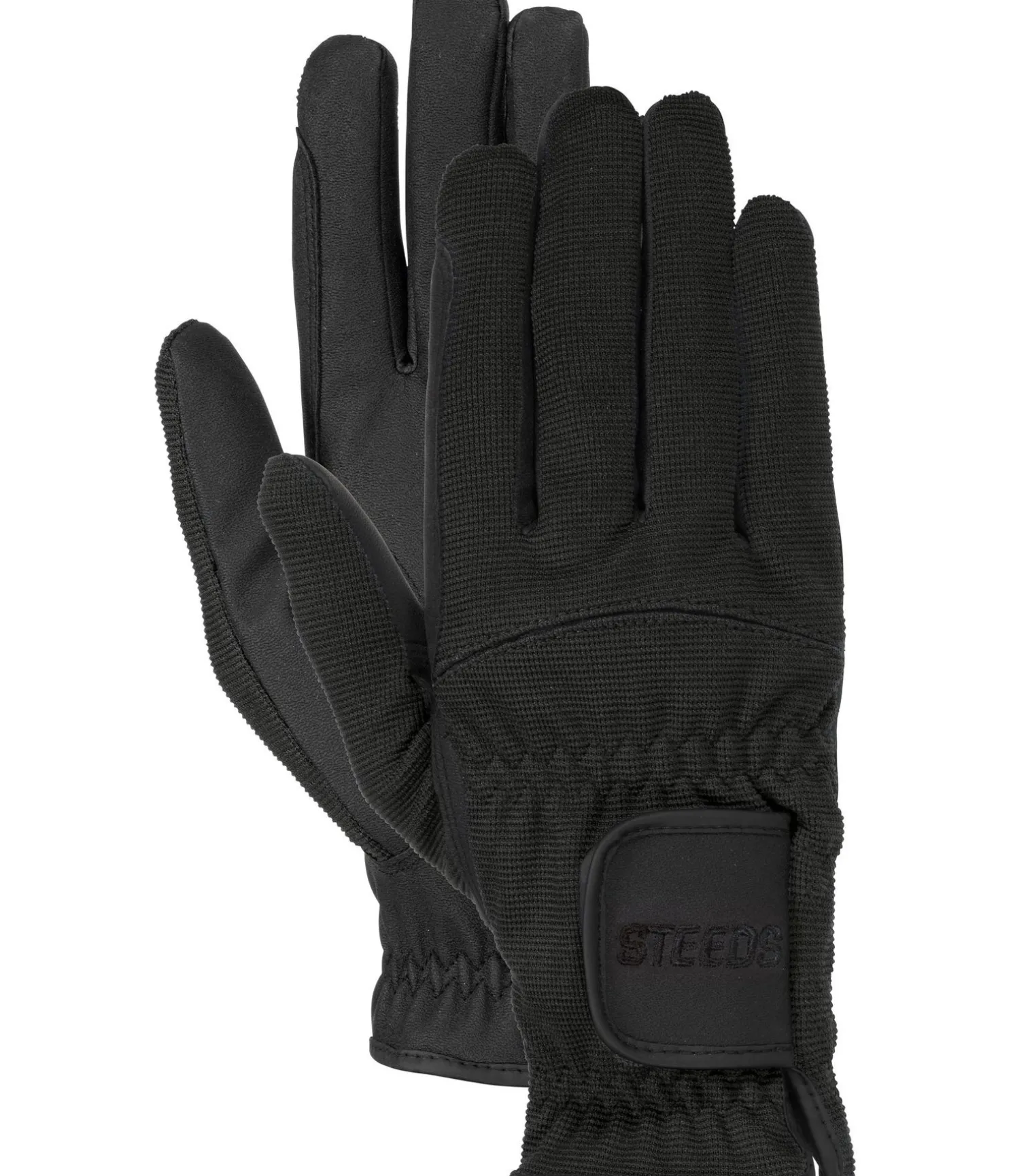 Gants confortables très bien ajustés. Matière extensible avec empiècement élastique sur le dos de la main. Matière antidérapante sur la paume pour une bonne prise en main des rênes. Dessus 100 % polyester. Paume 100 % polyuréthane.