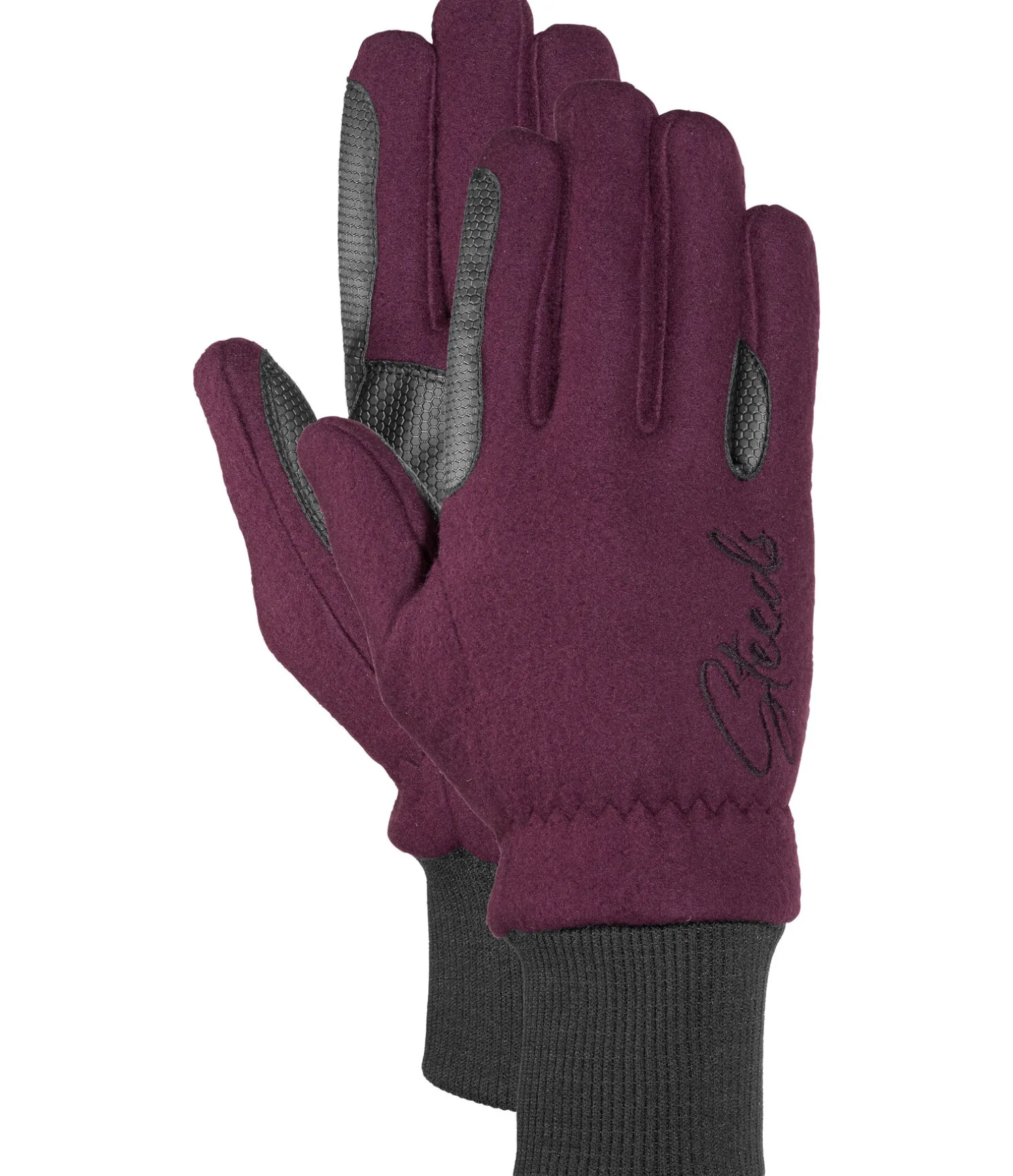 Gants d’équitation en polaire douce avec renforts antidérapants aux passages de rênes. Poignets élastiques. 100 % polyester.