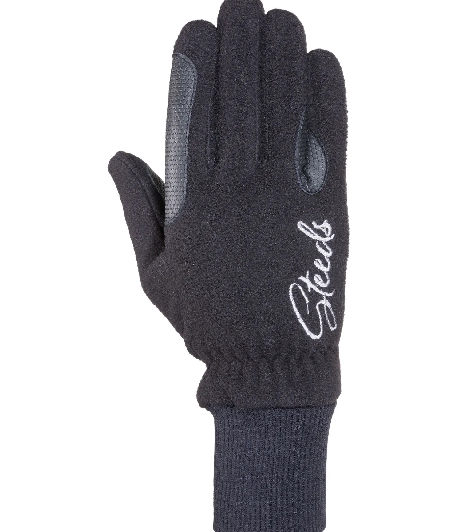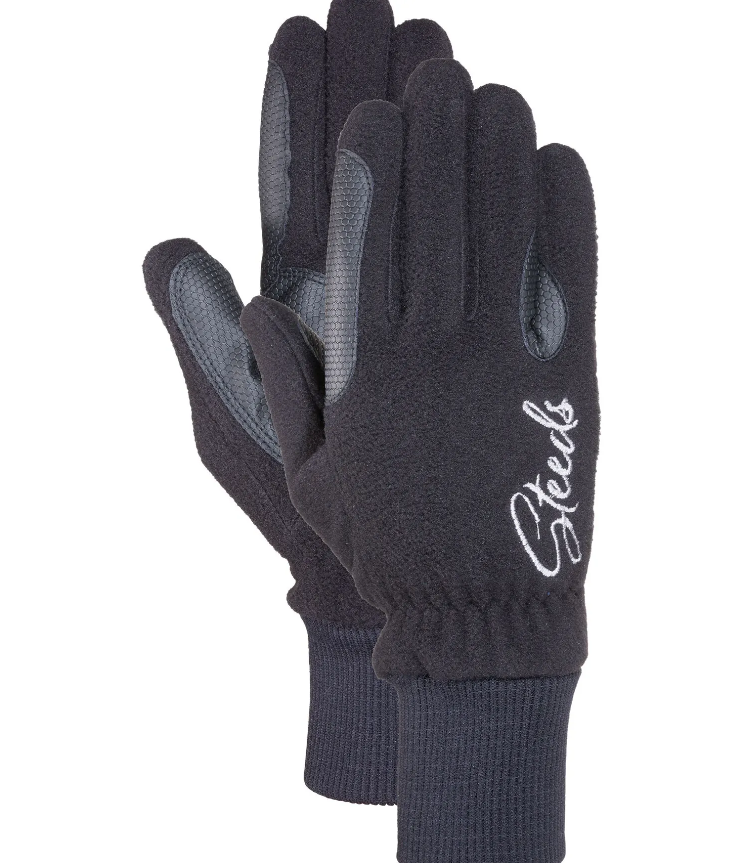 Gants d’équitation en polaire douce avec renforts antidérapants aux passages de rênes. Poignets élastiques. 100 % polyester.