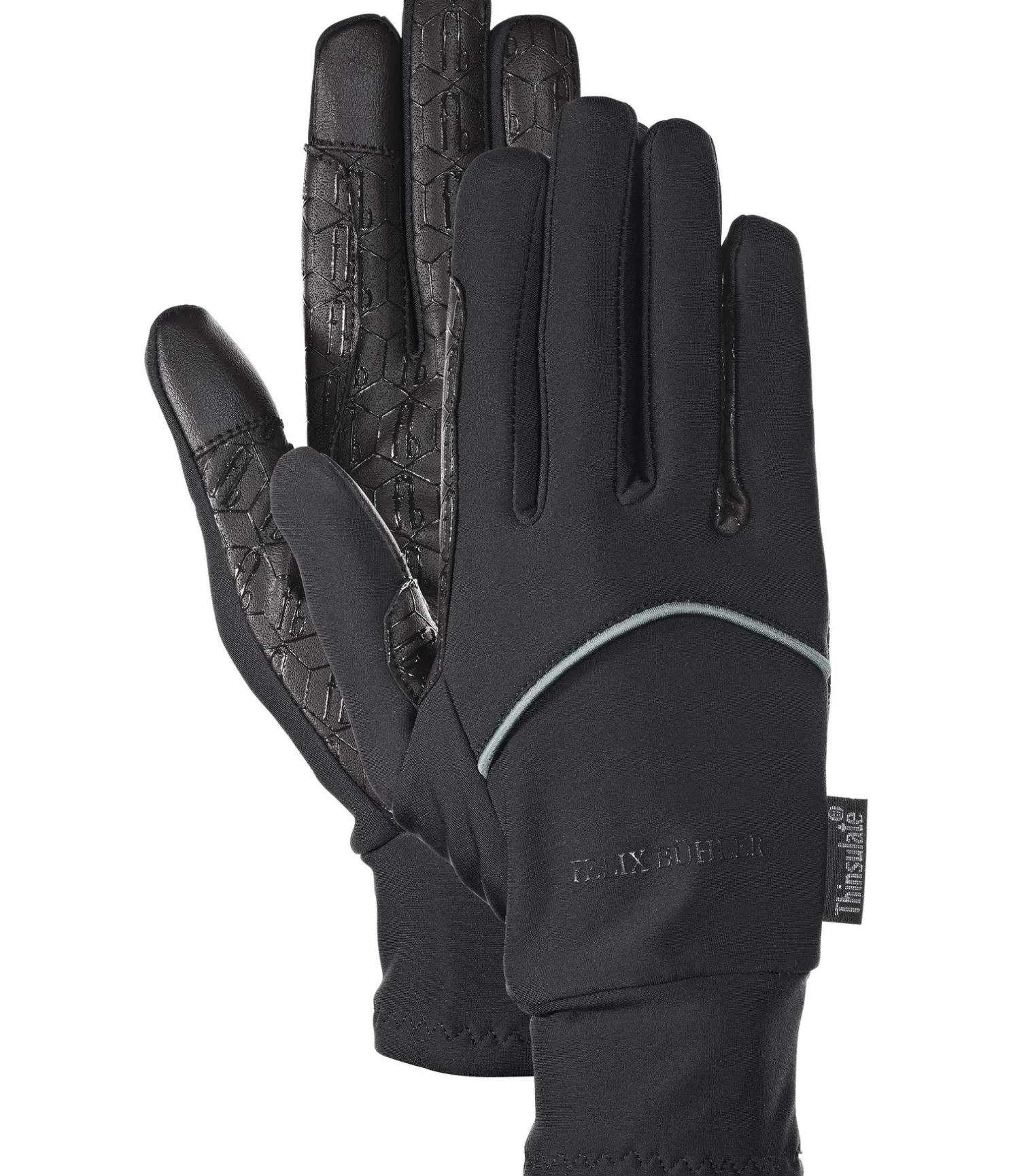 Gants polaires chauds et doux avec paume en matière synthétique pour une flexibilité et un maintien parfait. Motifs en silicone Felix Bühler sur la paume et logo imprimé sur le dessus. Dessus 87 % polyester, 13 % élasthane. Paume 100 % polyester avec revêtement polyuréthane. Doublure 100 % polyester.