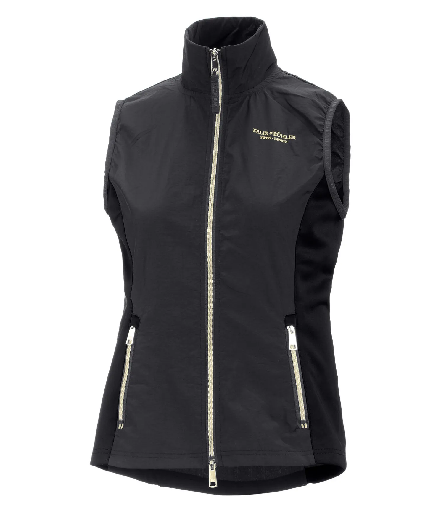 Gilet d’équitation léger et élégant en nylon. Coupe-vent. Les côtés en stretch permettent une grande liberté de mouvement et un ajustement parfait. Col montant. Fermeture à glissière double sens avec sous-patte. Deux poches latérales zippées. Broderie Felix Bühler sur la poitrine. 100 % nylon ; stretch 95 % polyester, 5% élasthanne.