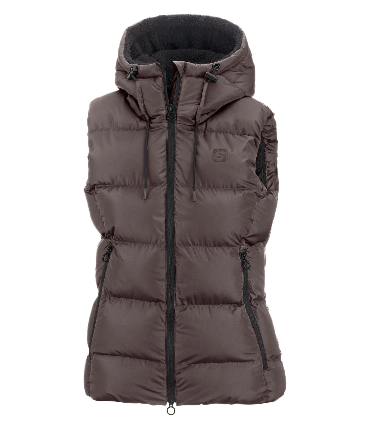 Gilet matelassé chaud avec doublure intégrale en polaire Teddy. Garnissage particulièrement doux imitation duvet. Capuche réglable extra haute dotée d’un bouton-pression pour être fixée dans le dos. Fermeture à glissière double sens avec sous-patte et protège-menton. 2 poches latérales zippées et 1 poche intérieure. Taille élastiquée. Badge STEEDS sur la poitrine. 100 % polyester.
