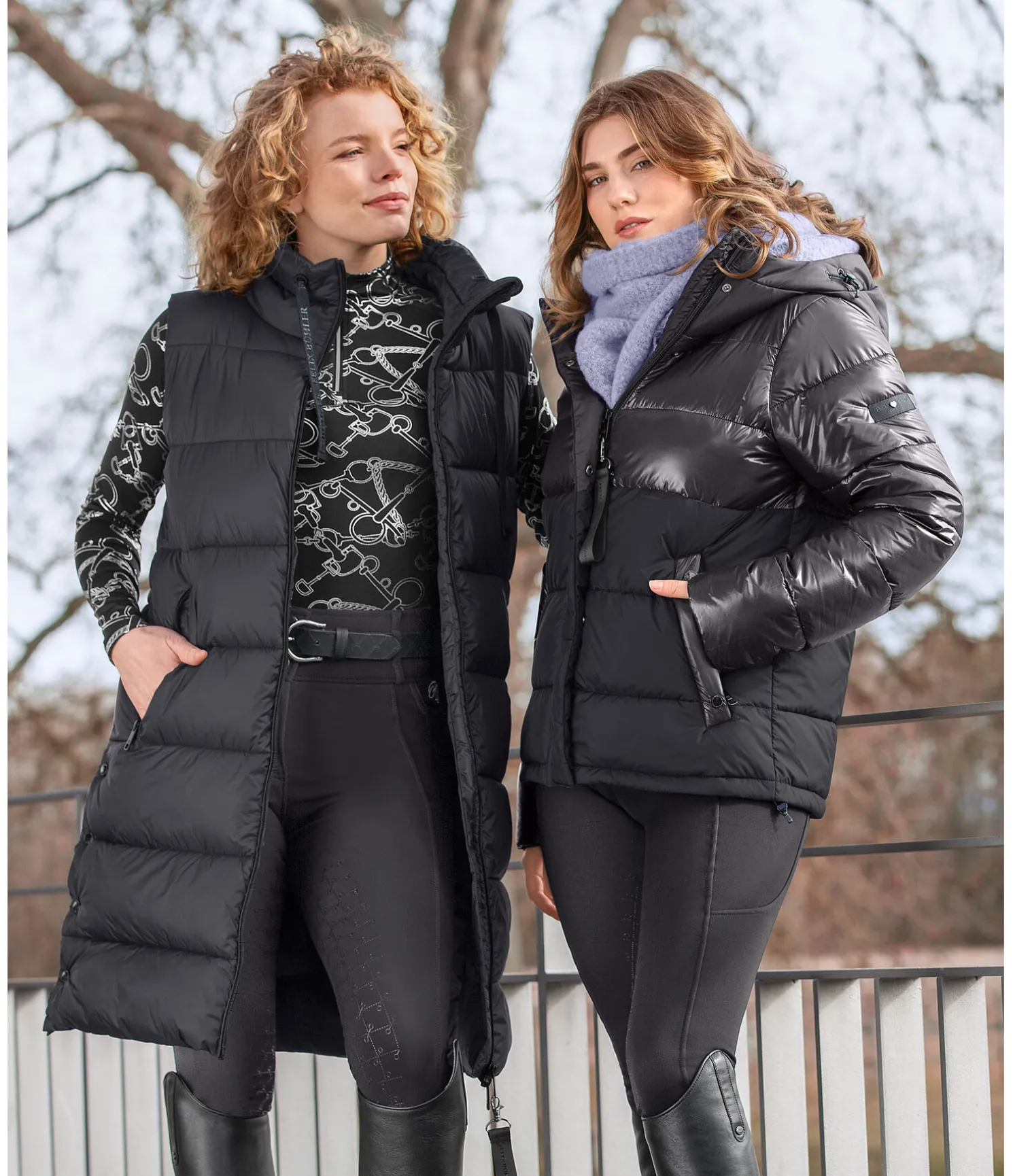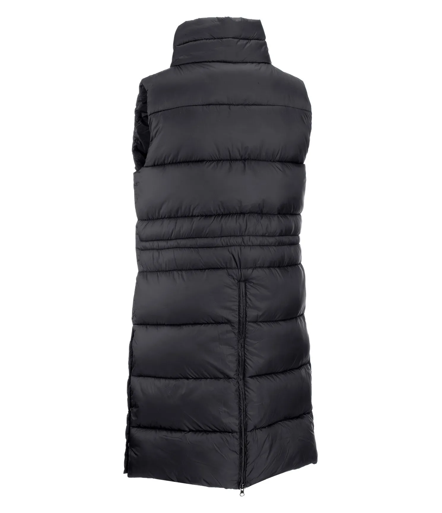 Gilet d’équitation long et matelassé. Col montant ajustable par cordon de serrage. Garnissage chaud imitation duvet. Fermeture à glissière bidirectionnelle avec sous-patte et protège-menton. 2 poches avant zippées. Taille réglable. Badge en forme de coeur sur l’ourlet. Logo siliconé sur la poitrine. 2 fentes cavalières latérales avec boutons-pression et 1 fente cavalière zippée à l’arrière. 100 % nylon.