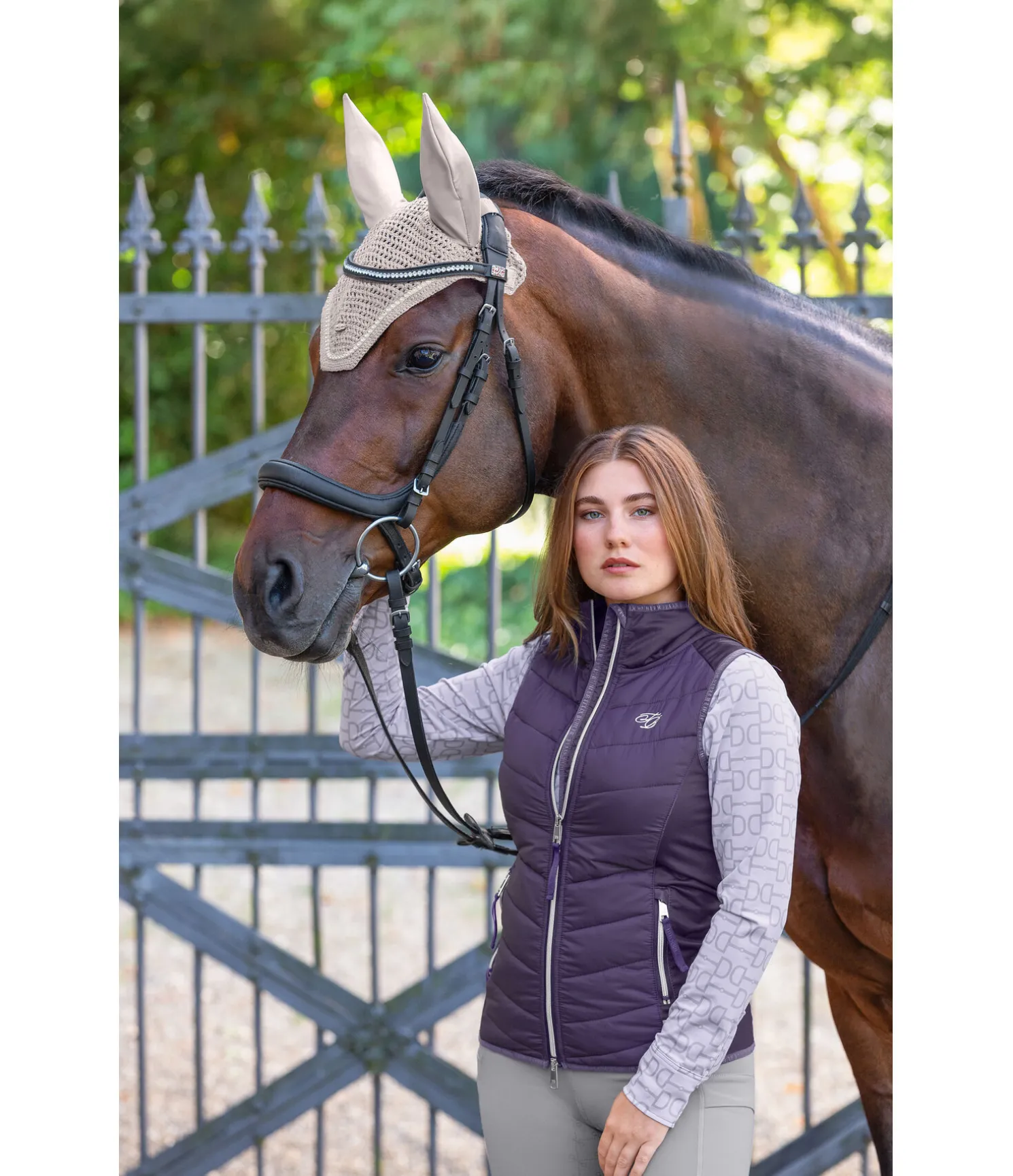 Gilet d’équitation bi-matière. Léger matelassage en nylon résistant sur le devant et tissu stretch Performance extensible. Fermeture à glissière double sens avec sous-patte et protège-menton, 2 poches zippées à l’avant. Emmanchures, col et taille élastiqués. Détails qui font la différence : fermetures à glissière argentées et logo brodé en fil scintillant argenté. Devant 100 % nylon, dos et côtés 90 % polyester, 10 % élasthanne.