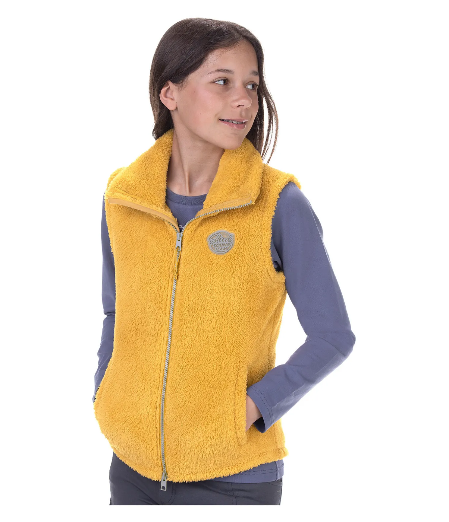 Gilet en polaire particulièrement doux avec col montant. Fermeture à glissière double sens avec sous-patte et protège-menton. 2 poches latérales dissimulées. Badge STEEDS sur la poitrine. 100 % polyester.