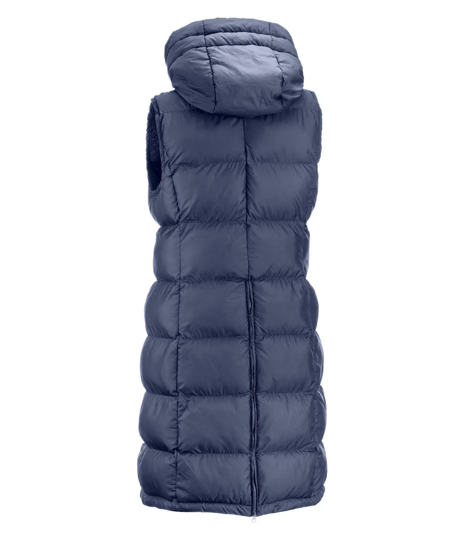 Gilet d’équitation long à capuche. Garnissage doux imitation duvet. Capuche haute réglable avec système d’attache dans le dos. Fermeture à glissière double sens dissimulée. Deux poches latérales zippées dissimulées doublées en polaire douce. Longue fente cavalière zippée avec sous-patte à l’arrière. Broderie Felix Bühler sur la poitrine. 100 % Polyester.