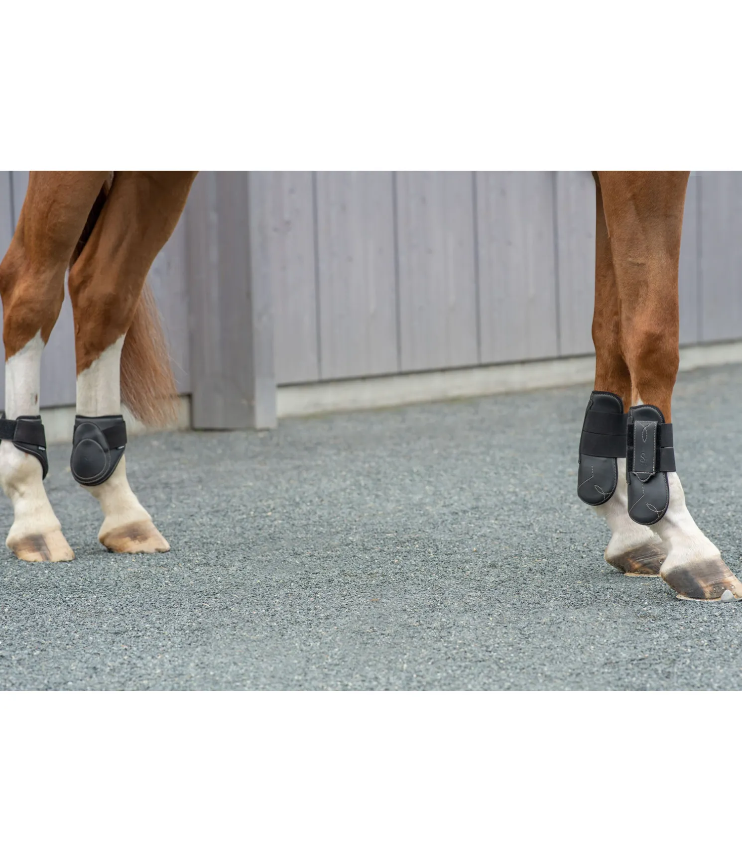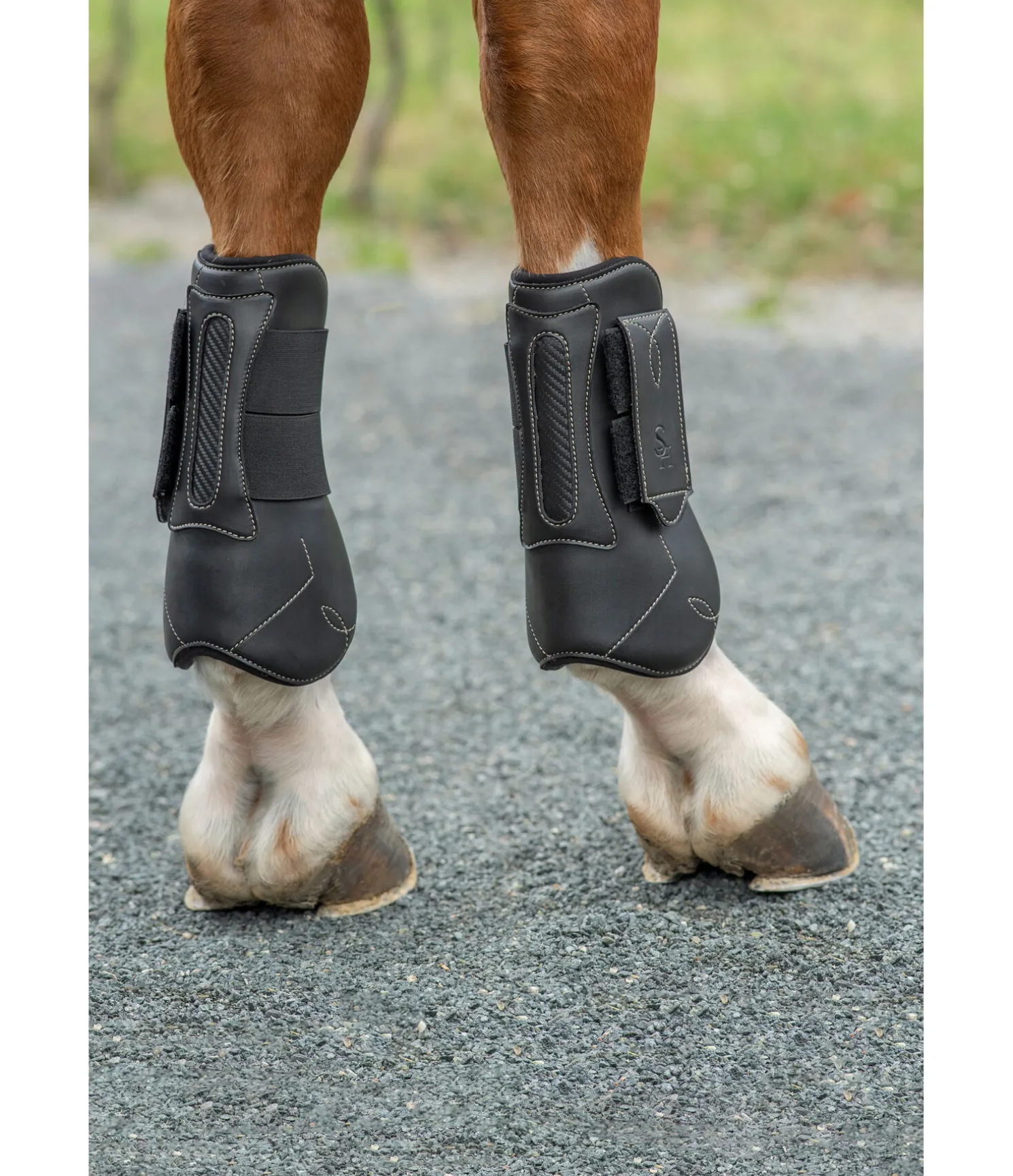 Guêtres SHOWMASTER en matière synthétique résistante. Protection supplémentaire contre les chocs le long du tendon. Surpiqûres décoratives pour un style original. Pattes auto-agrippantes élastiques pour un ajustement parfait et un maintien sûr. Vendu par paire.