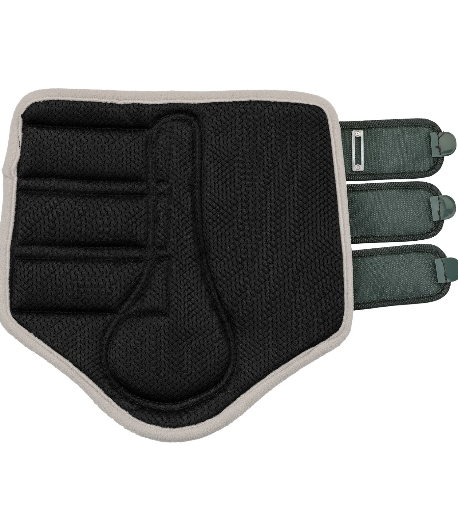 Guêtres souples pour postérieurs. Mesh extrêmement respirant permettant une circulation optimale de l’air. Pattes auto-agrippante élastiquées pour un ajustement parfait. Petit plaque métallique avec logo. Renfort sur la face intérieure pour une protection supplémentaire contre les chocs. Bordure en polaire pour éviter les frottements. 100 % polyester. Vendues par paires.