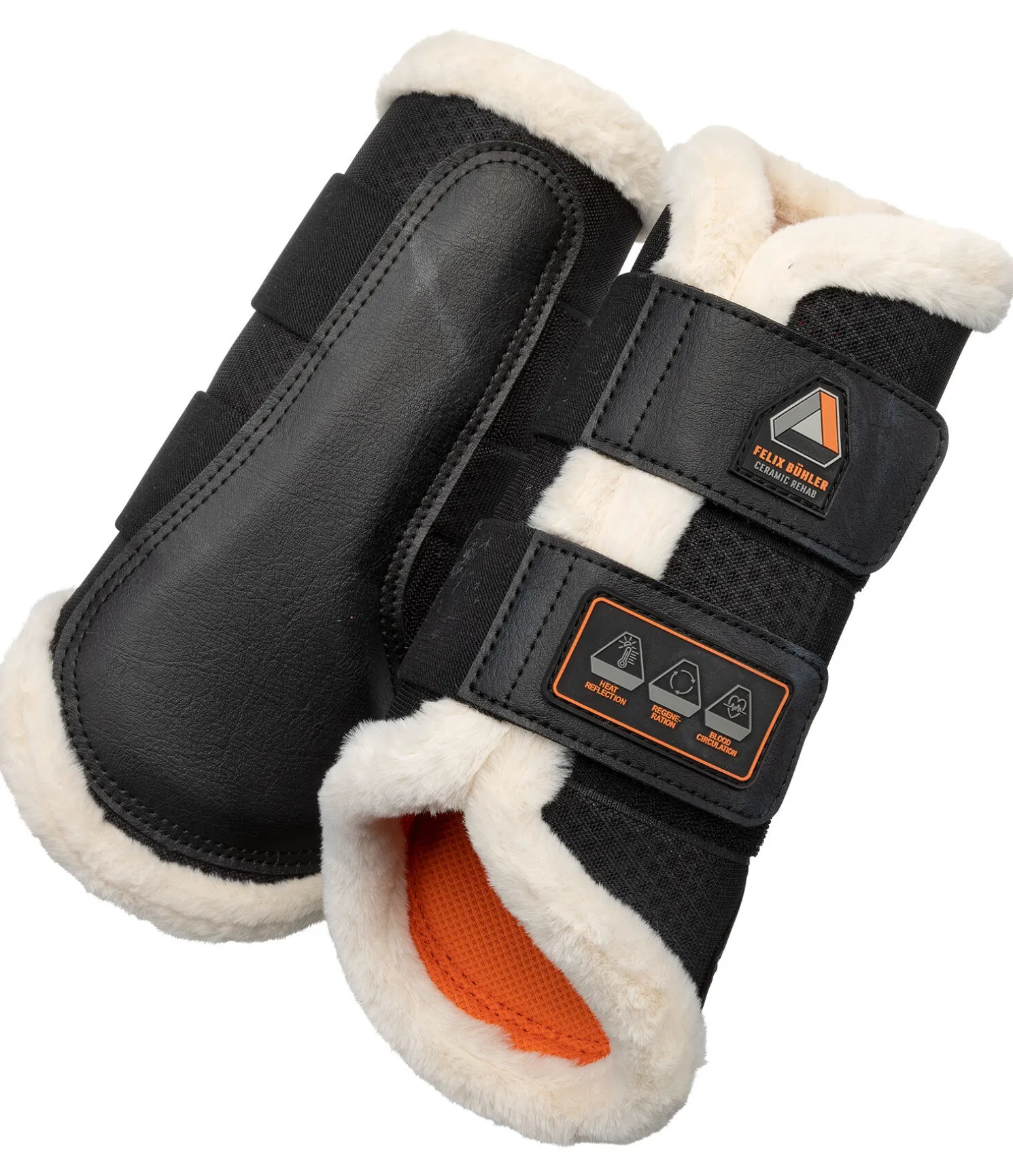 Guêtres anatomiques respirantes pour les antérieurs. Tissu à mailles alvéolées 3D de qualité supérieure qui permet une circulation de l’air optimale évitant l’accumulation de chaleur. La doublure intérieure respirante est en mesh contenant des fibres de céramiques qui réfléchissent la chaleur corporelle sous forme de rayonnement infrarouge, ce qui stimule la circulation sanguine. Les guêtres Ceramic Rehab sont particulièrement adaptées aux chevaux avec des antécédants médicaux et peuvent aider à l’échauffement. (IMPORTANT : elles ne remplacent PAS l’échauffement). Le rembourrage sur l’intérieur de la jambe est en synthétique robuste et lavable et a une fonction anti-chocs. Bordure en polaire Teddy douce pour protéger des frottements et garantir un grand confort. 2 pattes auto-agrippantes avec inserts élastiqués pour un maintien sûr. Robustes et lavables. Synthétique 100 % polychlorure de vinyle (PVC). Polaire Teddy, doublure intérieure et mesh 100 % polyester. Mousse 100 % élastomère thermoplastique. Patte auto-agrippante 100 % nylon.