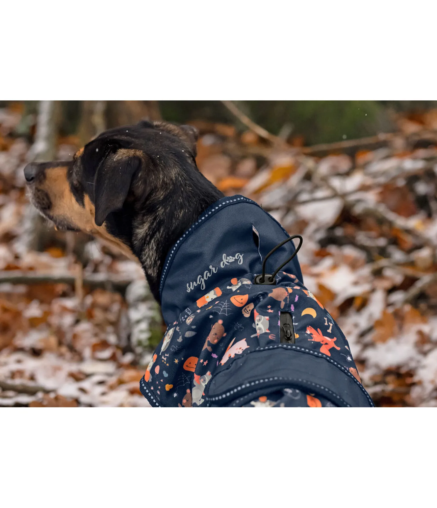 Manteau imperméable (3.000 mm), respirant (3.000 g/m2/24h) et coloré avec motifs automnaux et liseré réfléchissant. Idéal pour les journées d’automne humides et froides. Dessus en polyester Oxford 600 deniers robuste et résistant à la déchirure. Réglable au cou par cordon de serrage et au poitrail par patte auto-agrippante à fermer dans le dos pour le meilleur ajustement. Passage de laisse zippé étanche dans le dos et passage de collier au col. Des courroies de cuisses dissimulées permettent d’éviter que le manteau ne glisse lorsque le chien s’amuse, sans pour autant le gêner. Découpe au niveau des épaules pour une plus grande liberté de mouvement. 100 % polyester.