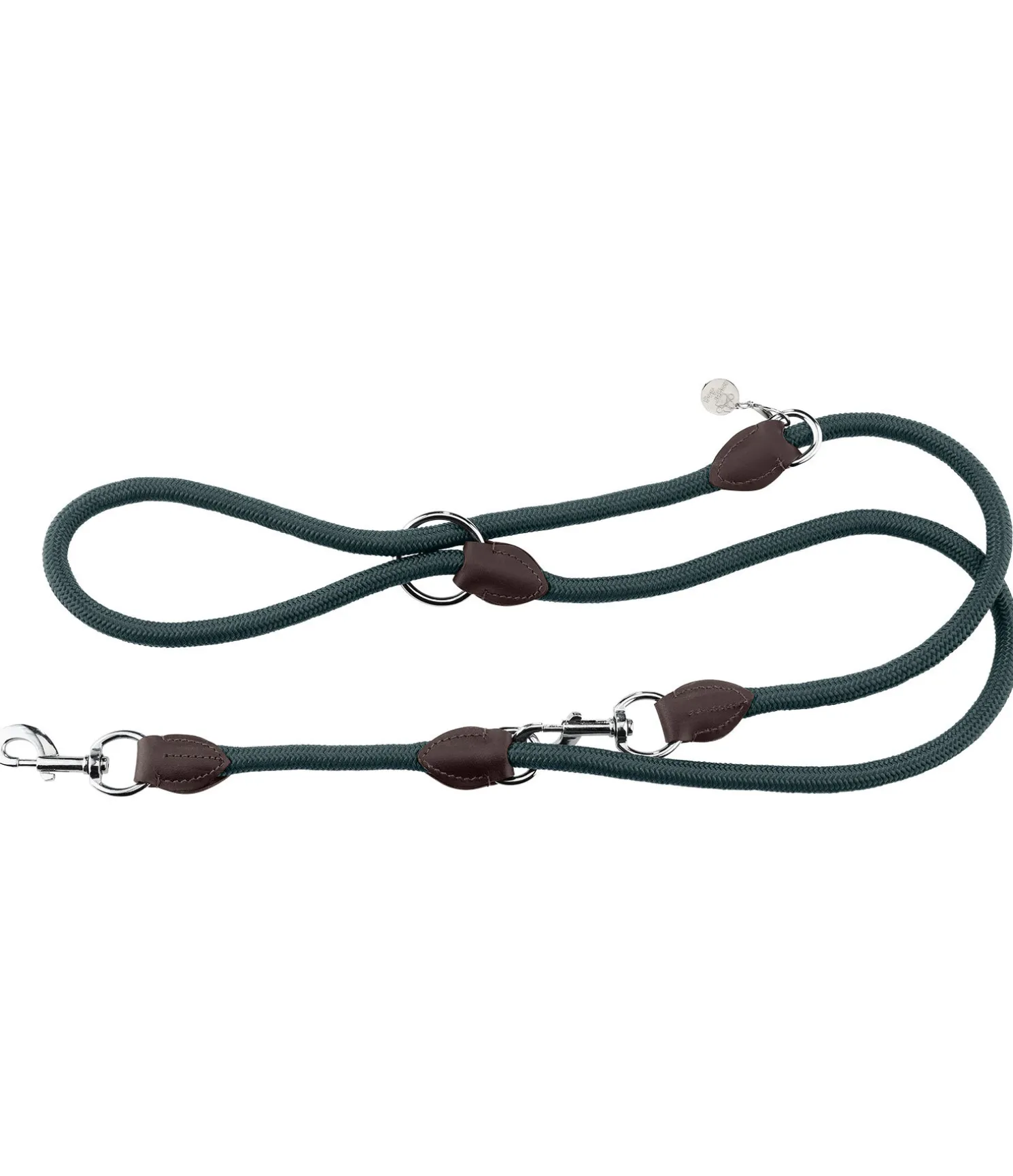 Elégante laisse en polypropylène doux avec des extrémités en cuir fin huilé. Trois possibilités d’attache. Avec un imprimé patte subtil. Longueur 200 cm. Convient pour les grands chiens.