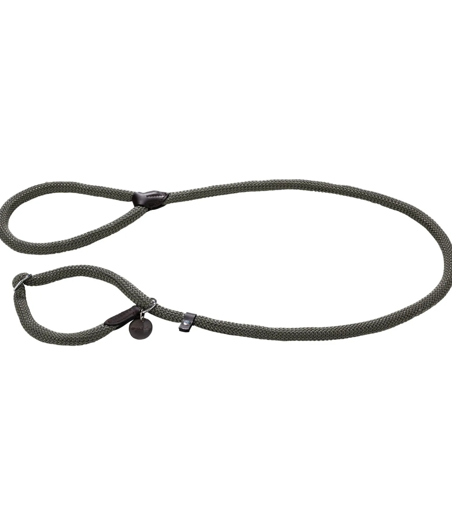 Laisse retriever légère en corde robuste avec dragonne, servant à la fois de laisse et de collier. Arrêt de traction et curseur permettant de régler le tour de cou en continu en cuir véritable. Idéale pour les chiens se promenant la plupart du temps en liberté ou aimant se baigner car sans collier pour éviter qu’il s’accroche par mégarde. Parfait pour les shows ou les compétitions (d’agility par exemple). Remarque : les laisses retriever ou moxon ne sont pas adaptées aux chiens qui tirent beaucoup quand ils sont en laisse. 2 m. 100 % polypropylène.