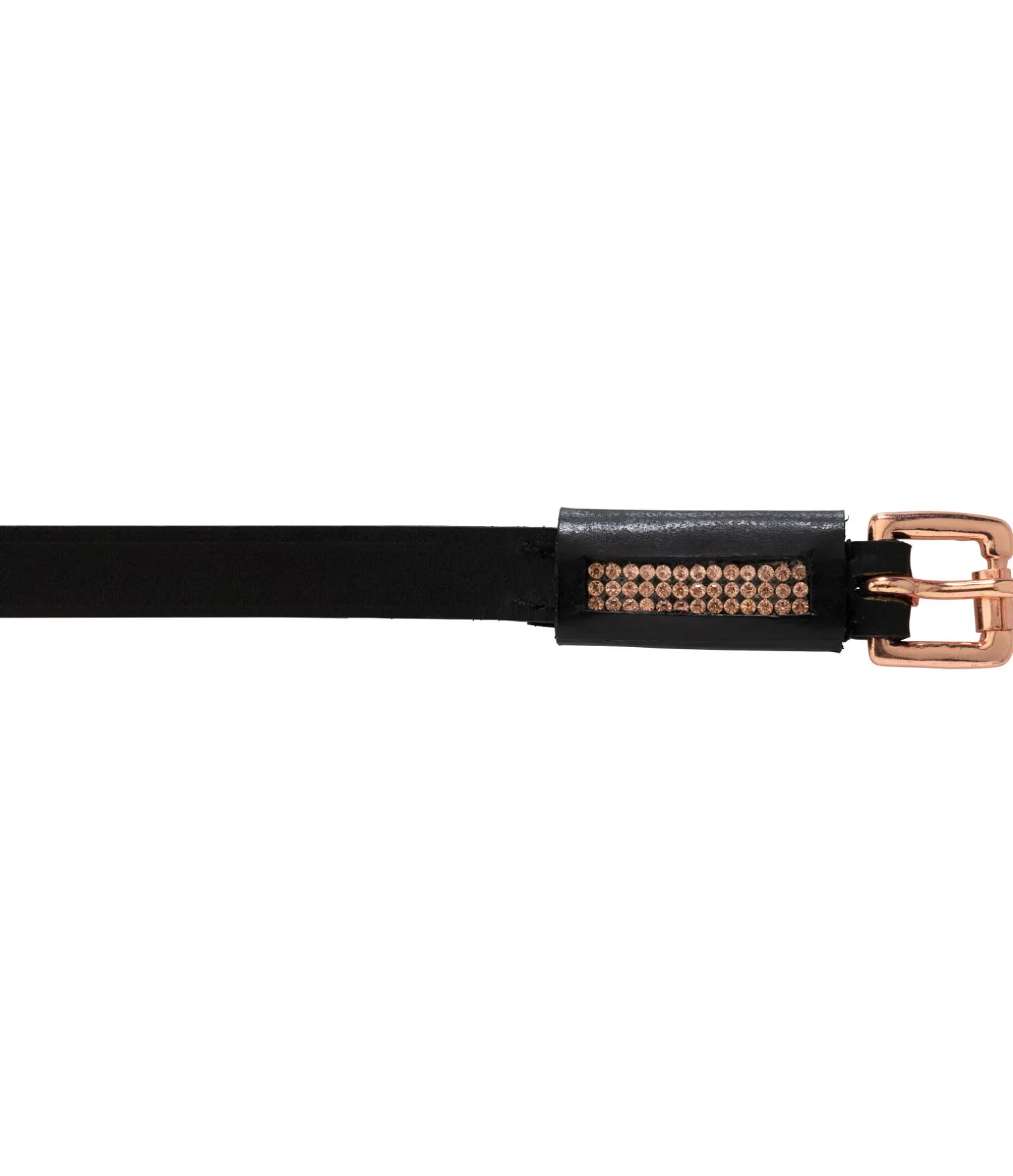 En cuir avec strass. Boucles argentées en couleur SI et rose doré en couleur RG.