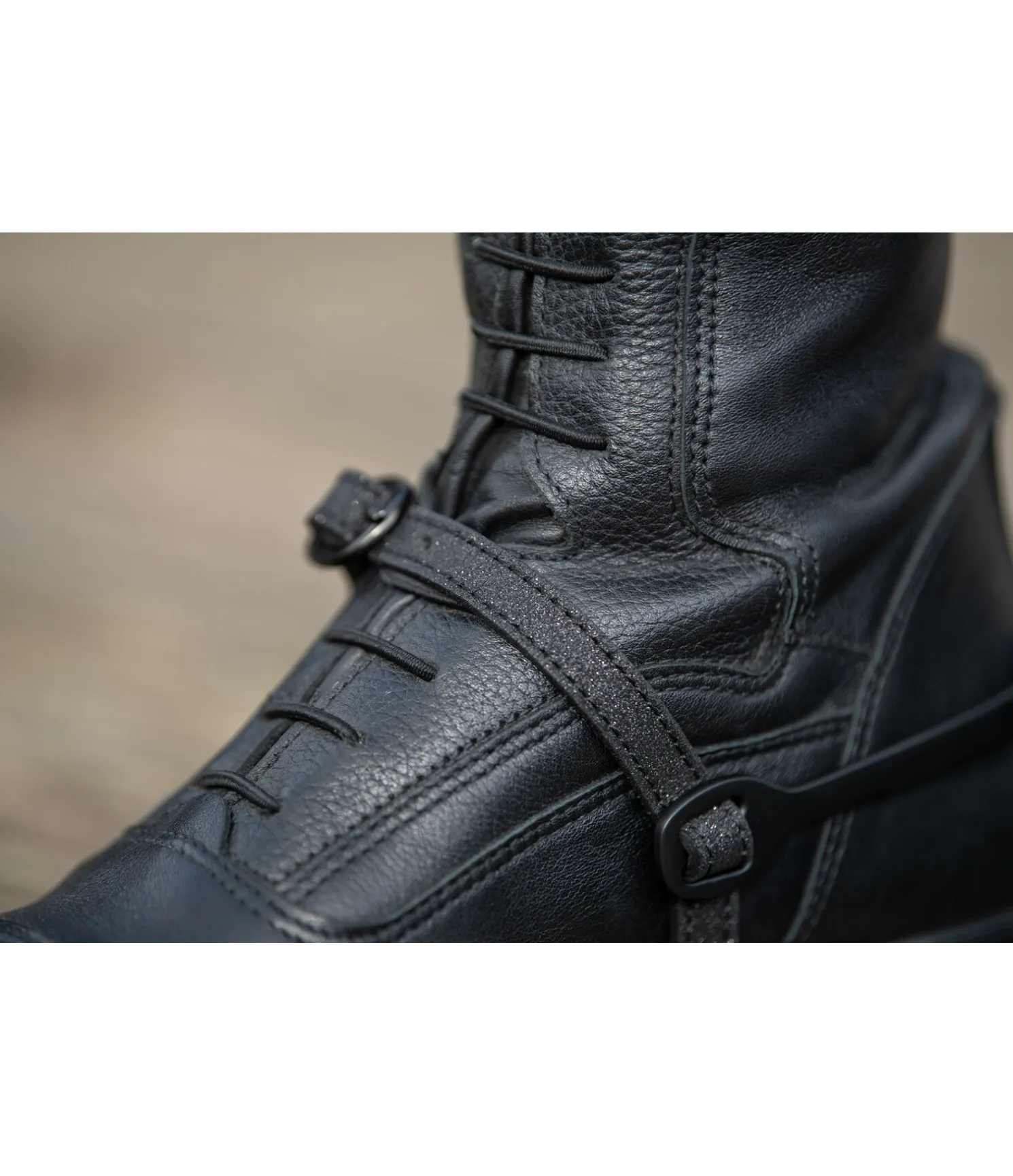 Lanières d’éperons scintillantes. Intérieur en cuir souple pour préserver la botte. Boucle noire. Vendues par paire.