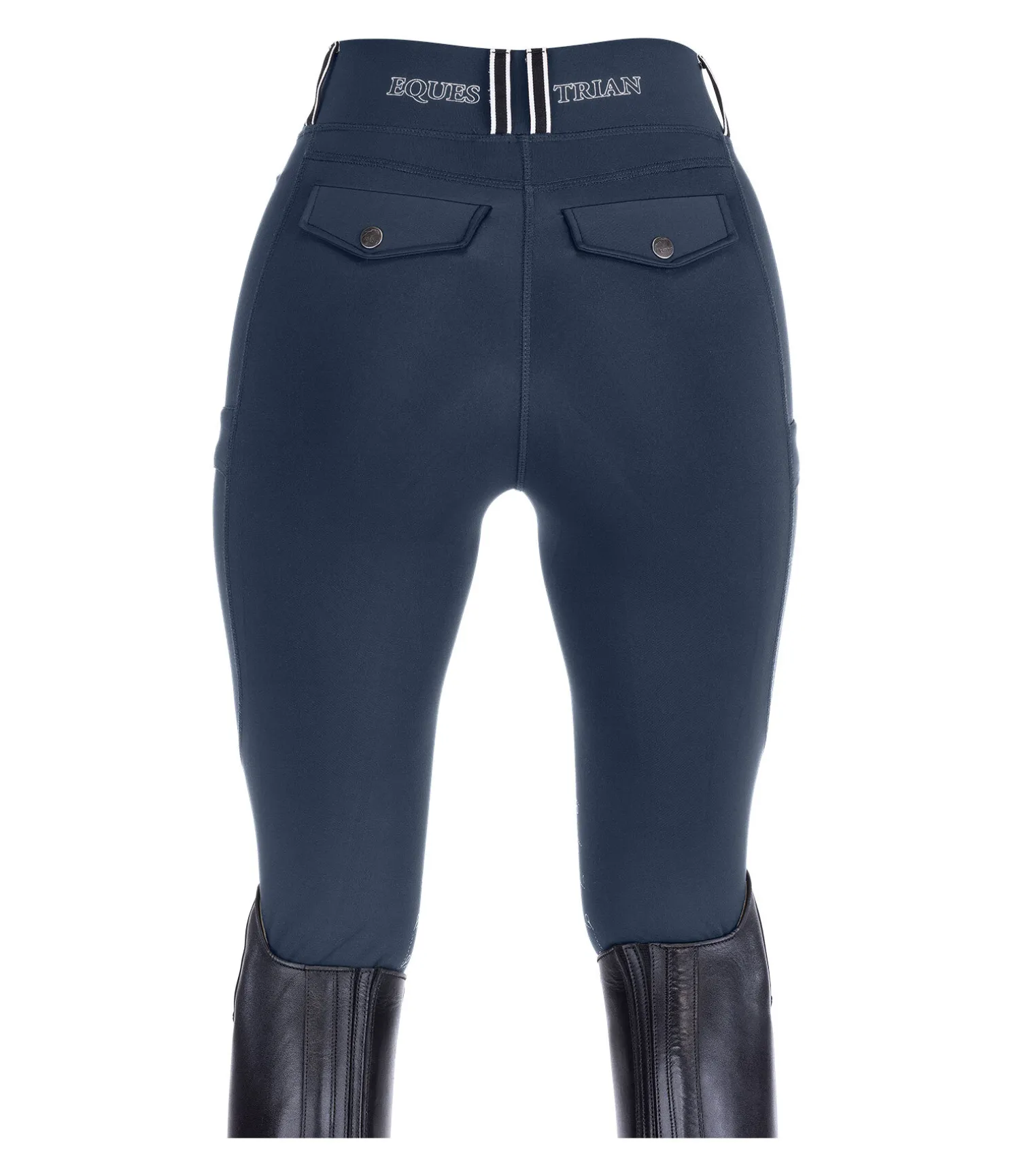 Legging d’équitation super confortable avec basanes en silicone. Matière respirante, extensible dans 4 directions. Séchage rapide. Ceinture large avec passants. 2 poches latérales pour téléphone portable. Aucune couture au niveau des genoux. 2 fausses poches à l’arrière. 78 % polyester, 22 % élasthanne.