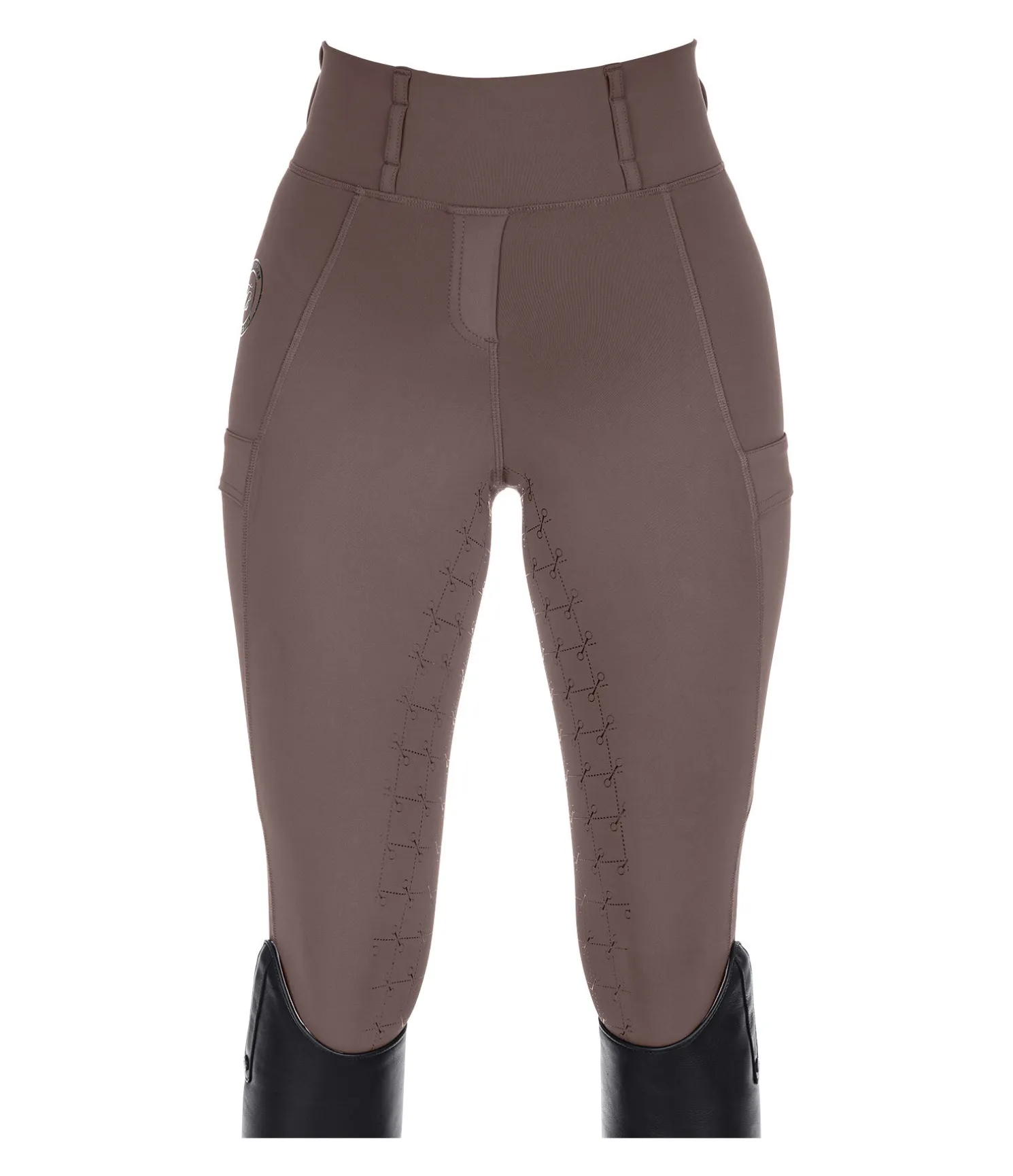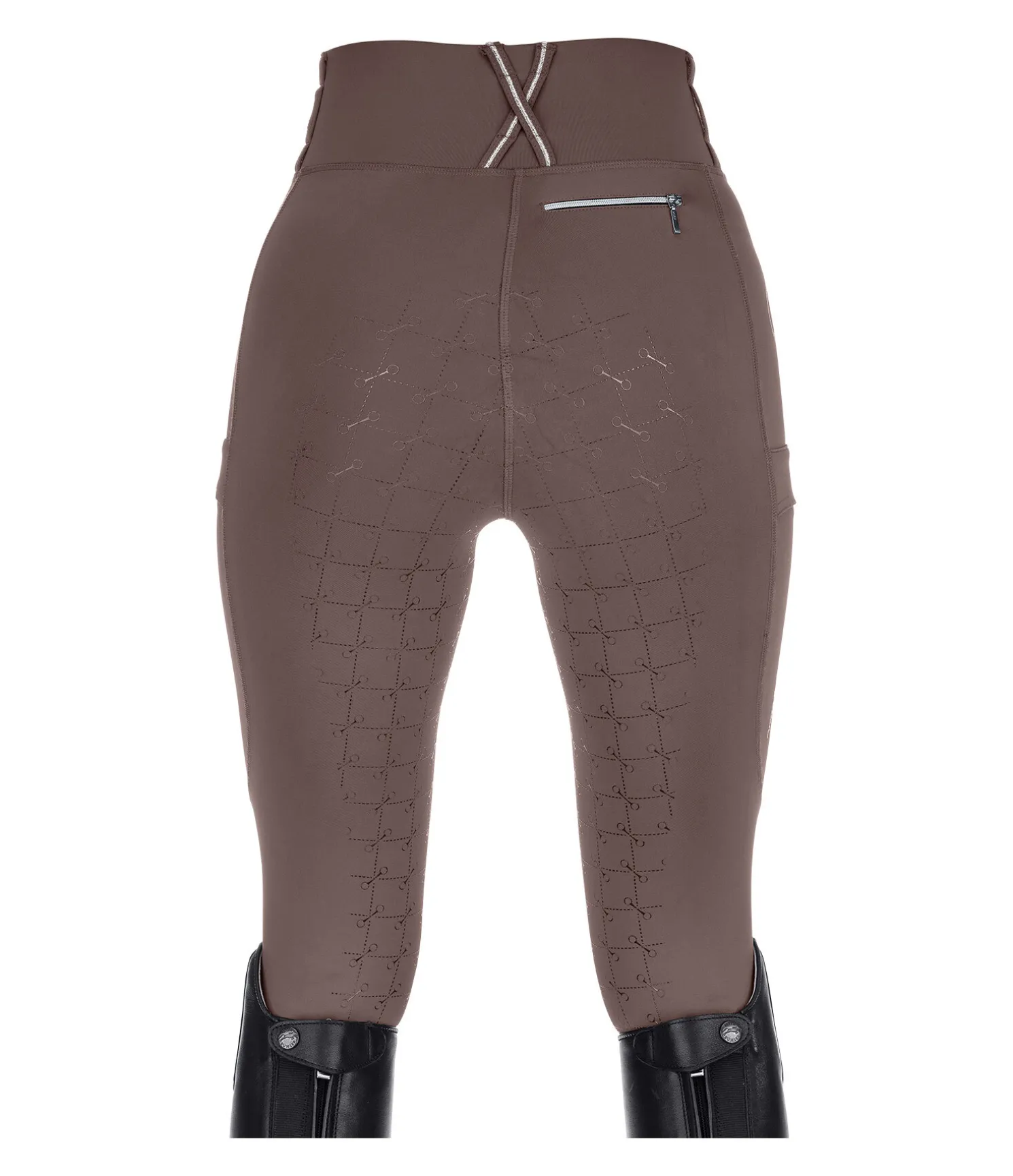 Legging d’équitation confortable à fond intégral grip en silicone avec motifs de mors. Matière respirante de grande qualité, extensible dans 4 directions. Séchage rapide. Soutien parfait et coupe ajustée. Ceinture extra large avec passants. 1 poche arrière zippée et 2 poches latérales pour téléphone portable. Aucune couture au niveau des genoux. Bas de jambe extensible. Imprimés Felix Bühler pailletés. 78 % polyester, 22 % élasthanne.