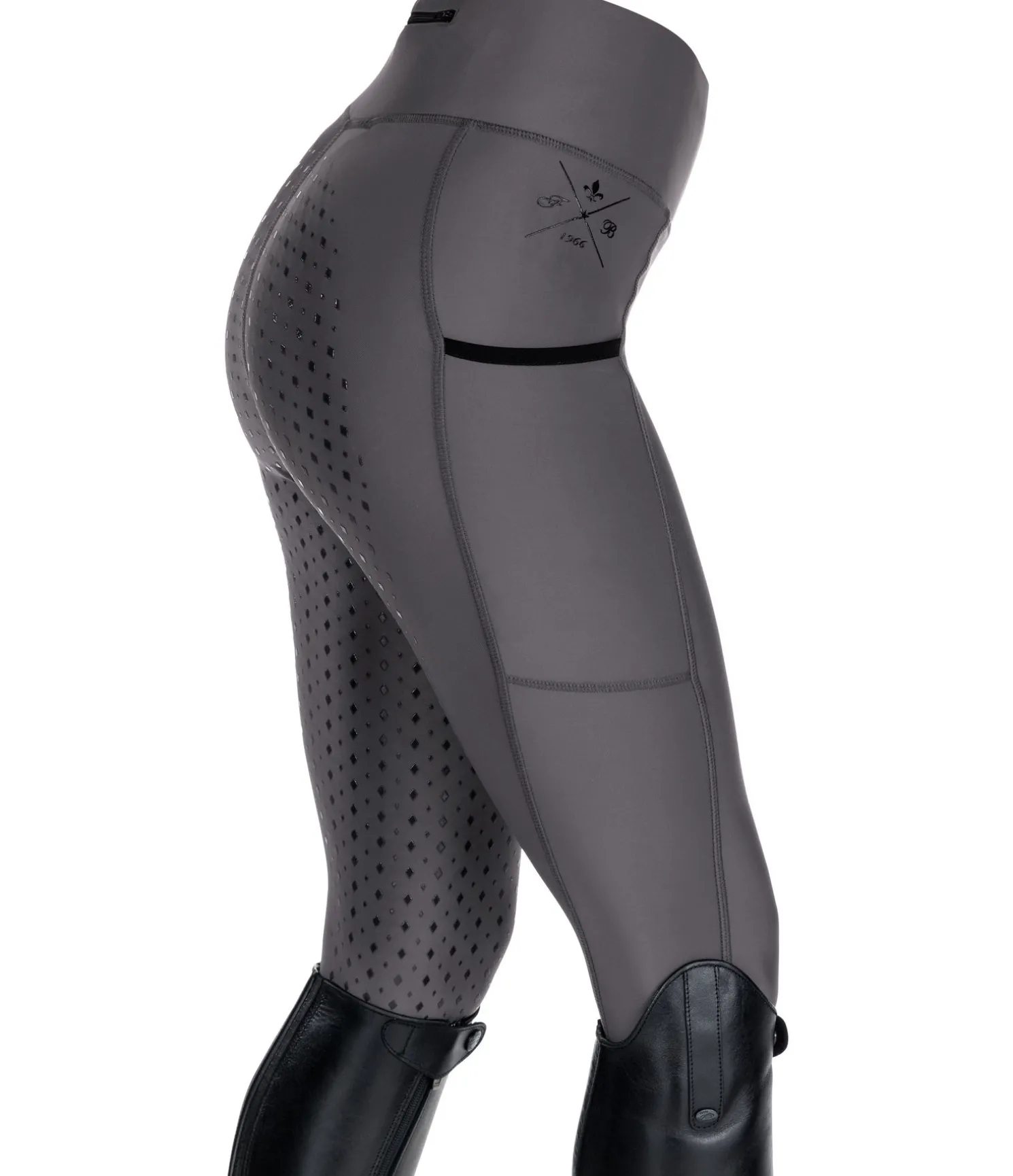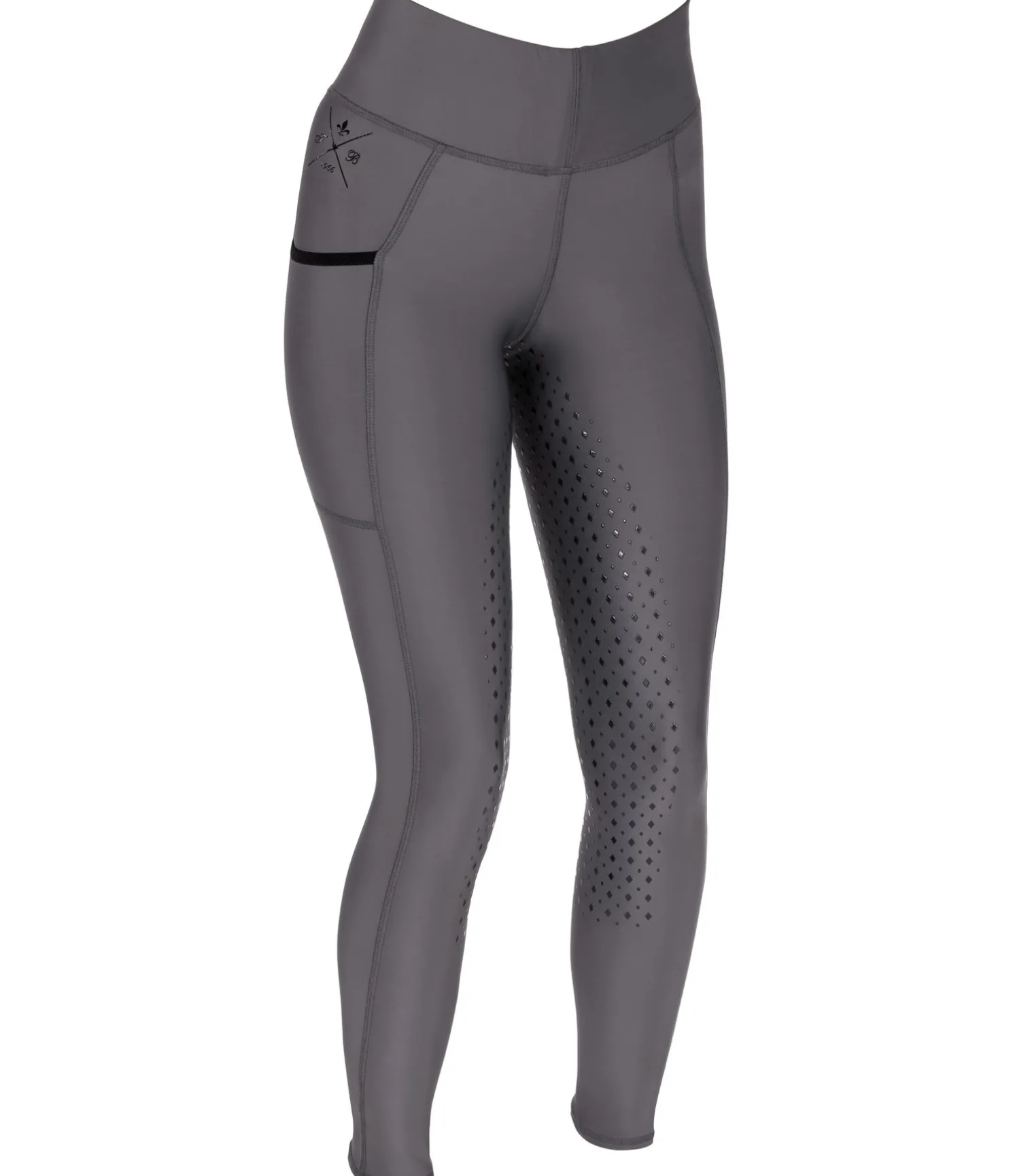 Legging d’équitation confortable. Fond intégral grip en silicone. Matière stretch extensible dans 4 directions. Ceinture extra large. Poche zippée arrière et poche latérale pour téléphone portable. Aucune couture au niveau des genoux. Bas de jambe extensible. Imprimé siliconé Felix Bühler. 90 % nylon, 10 % élasthanne.
