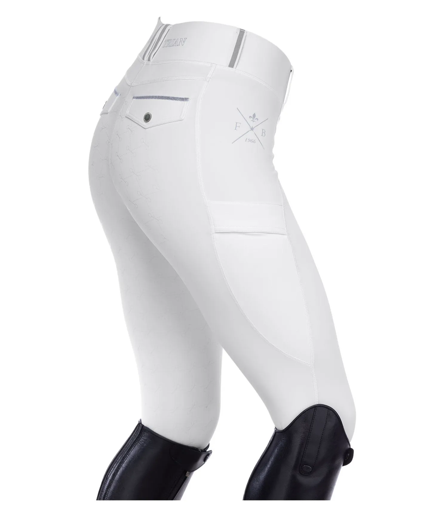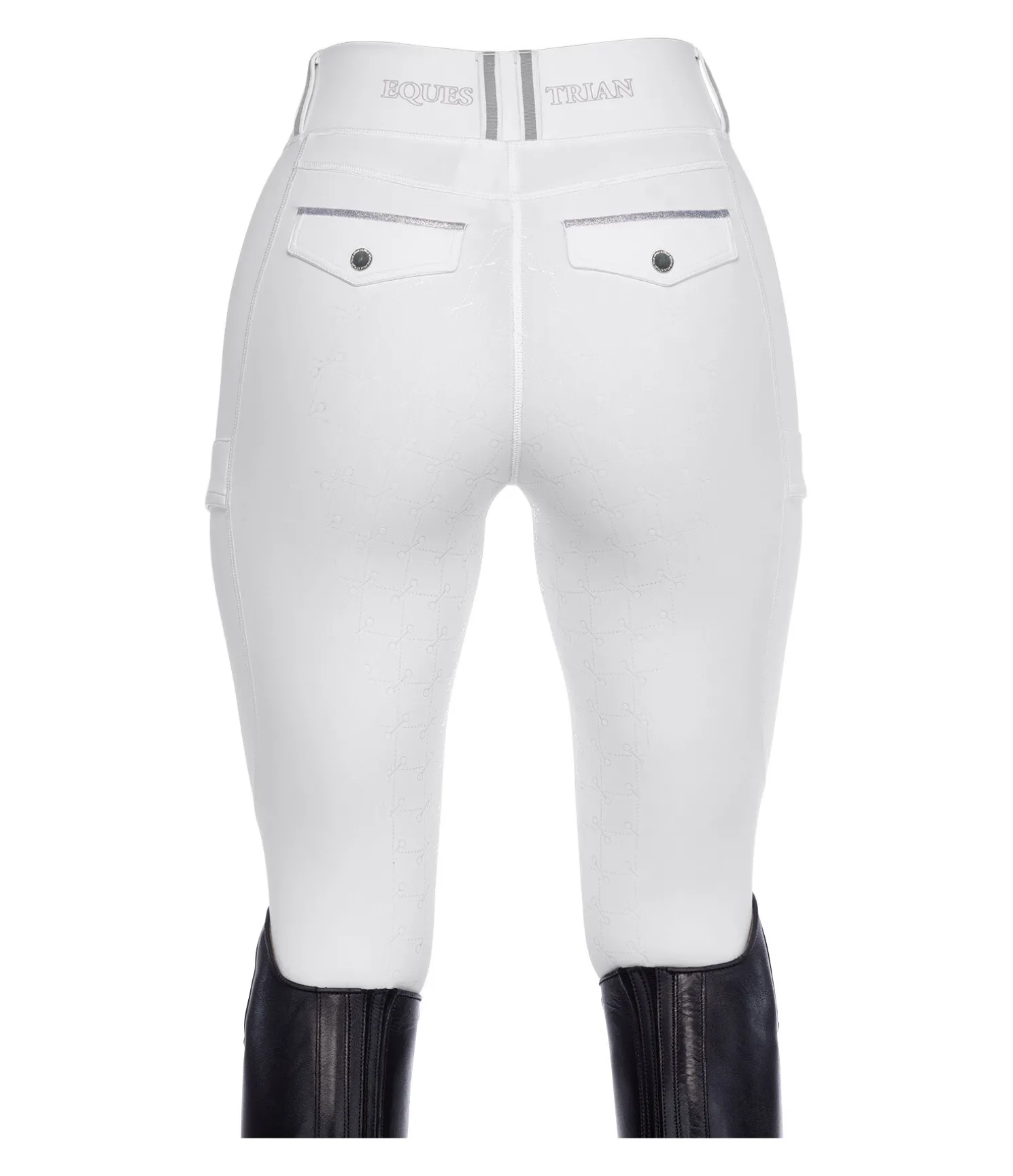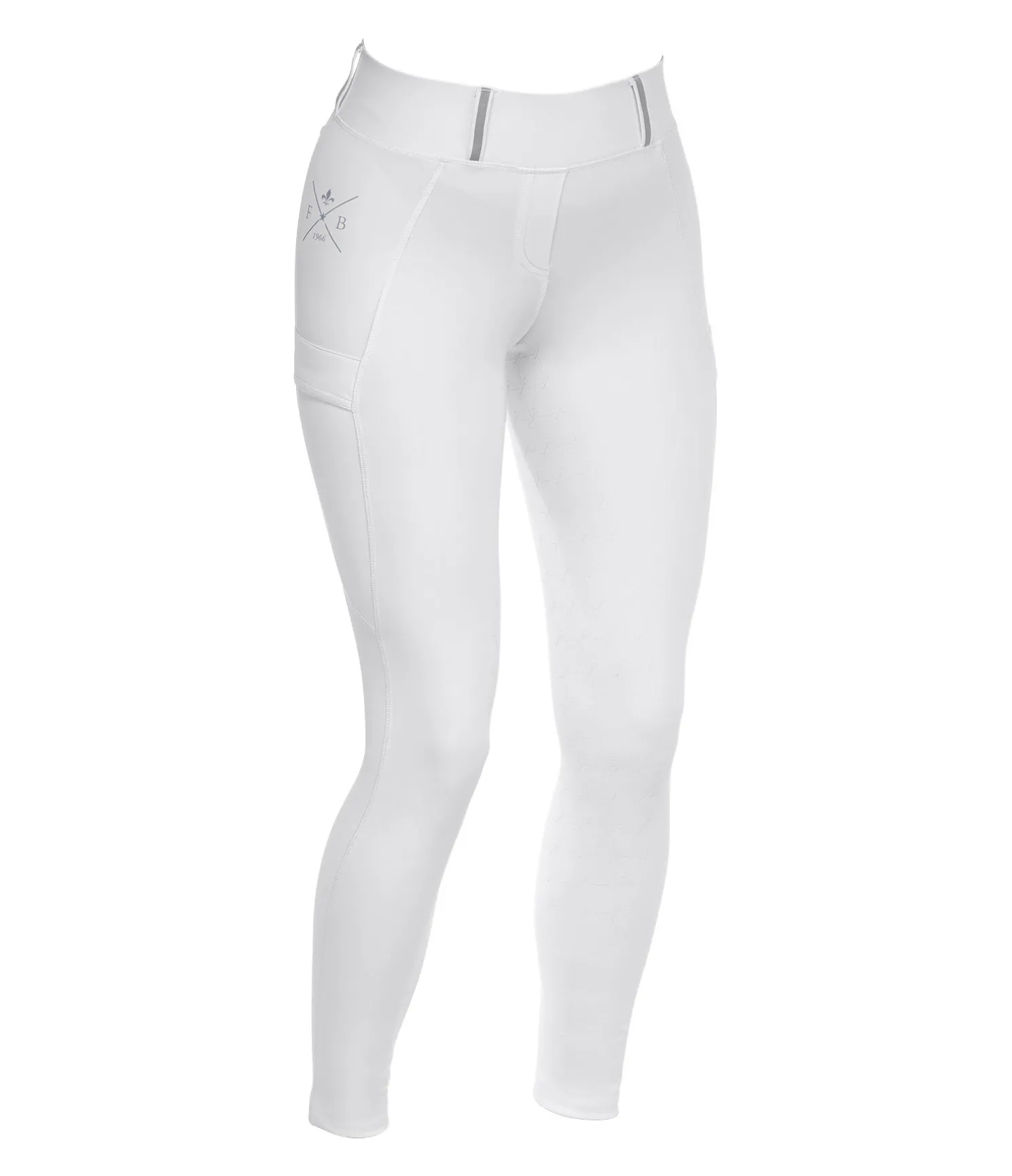 Legging d’équitation sportswear à fond intégral grip en silicone. Matière respirante de grande qualité, extensible dans 4 directions. Séchage rapide. Ceinture extra large avec passants dotés d’une bordure de couleur contrastante. 2 poches latérales pour téléphone portable. Aucune couture au niveau des genoux. Bas de jambe extensible. Imprimés Felix Bühler. 2 fausses poches arrière avec bande scintillante. 85 % nylon, 15 % élasthanne.