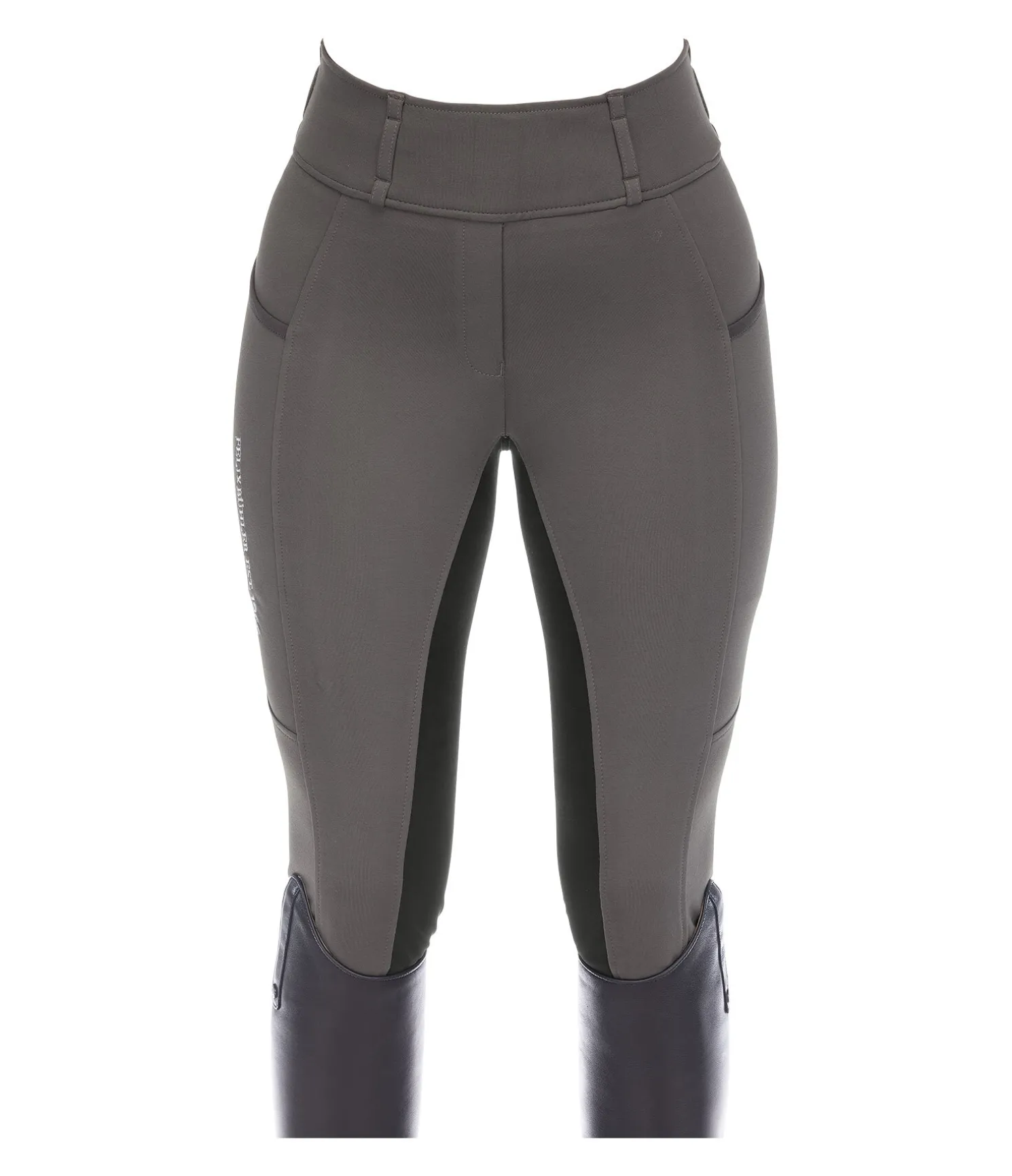 Legging d’équitation classique en matière stretch extra-douce et extensible dans 4 directions. Fond intégral avec la nouvelle technologie extra-douce COMFORT TECH SEAT. Broderie Felix Bühler sur la jambe et à l’arrière. Ceinture extra-large avec passants, 2 poches pour téléphone portable sur les cuisses, 1 petite poche arrière, bas de jambe extensible. 68 % viscose, 27 % polyamide, 5 % élasthanne. Fond 60 % nylon, 40 % polyuréthane.