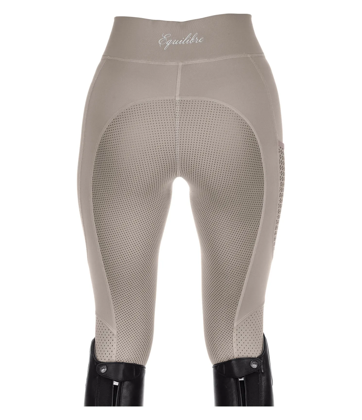 Legging d’équitation confortable à fond intégral grip en silicone. Stretch extensible dans 4 directions pour un effet sculptant garanti. Matière respirante à séchage rapide. Empiècements ajourés sur la jambe, grâce à une découpe laser, avec motif de petite fleur. Ceinture large avec passants. Une poche sur la jambe pour téléphone portable. Aucune couture sur les genoux. Signature Equilibre discrète à l’arrière. 82 % polyester, 18 % élasthanne.