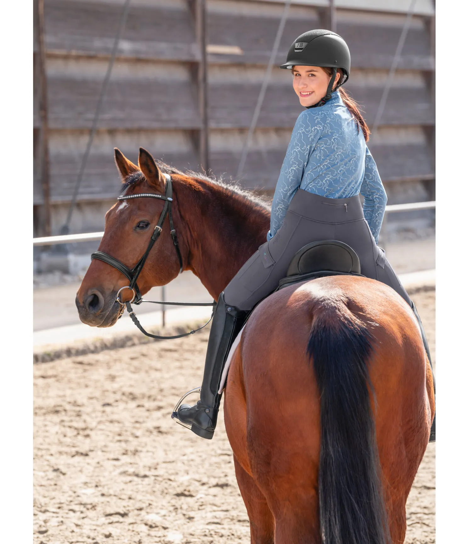 Legging d’équitation d’hiver super douillet et chaud pour enfant avec ceinture extra-large. Ajustement parfait et confortable grâce à la matière stretch souple extensible dans 4 directions avec intérieur molletonné. Respirant et à séchage rapide. Fond intégral en silicone. Poche latérale pour téléphone portable. 60 % polyester, 33 % polyamide, 7 % élasthanne.
